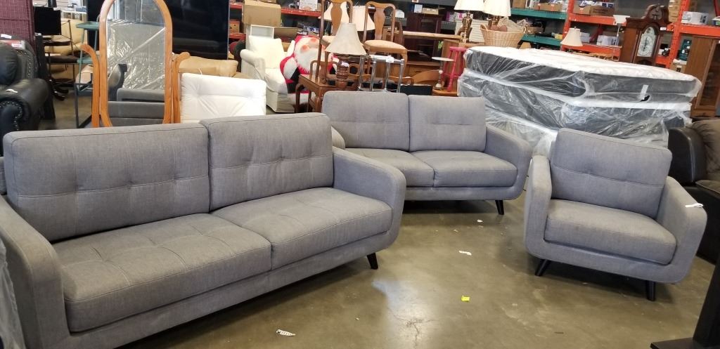 3PC GREY COUCH SEAT - SOFA, LOVESEAT, ARM CHAIR