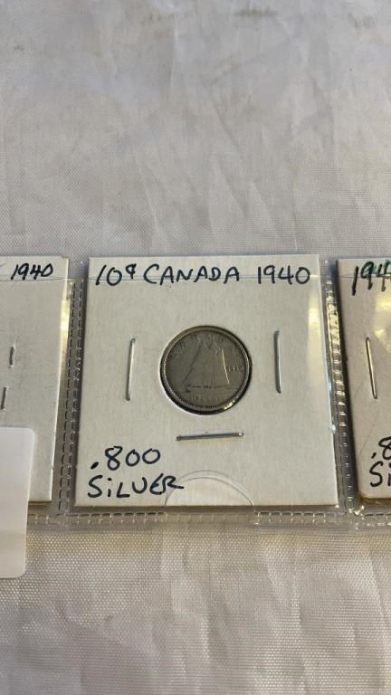 4 1940 GEORGE V COINS - 1 CENT, 5 CENT, 10 CENTS, 25 CENTS .800 SILVER