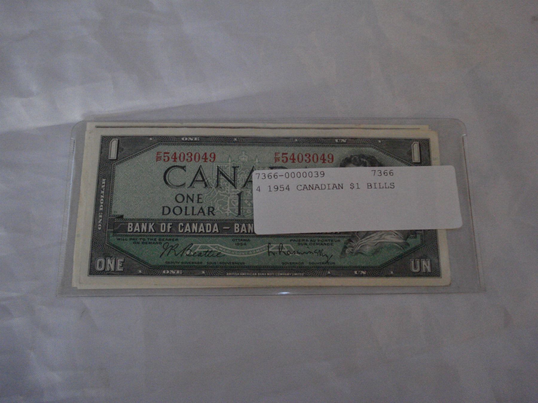 4 1954 CANADIAN $1 BILLS
