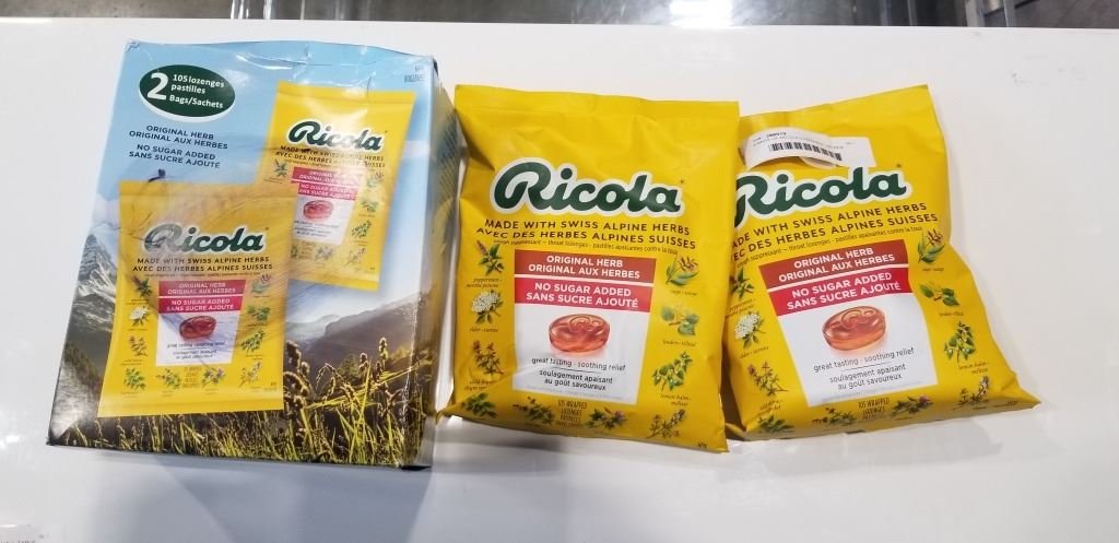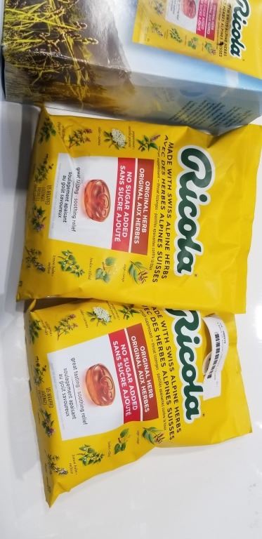 4 BAGS OF RICOLA LOZENGES. 105 PER BAG