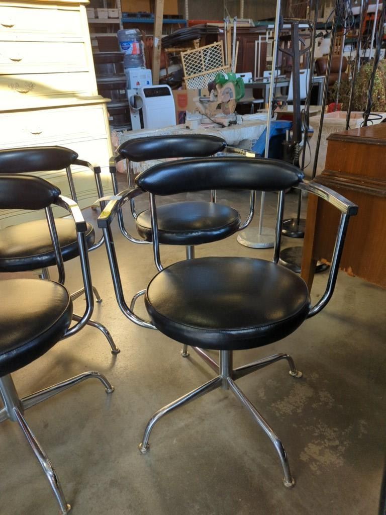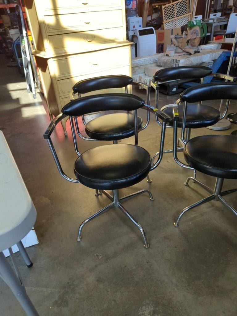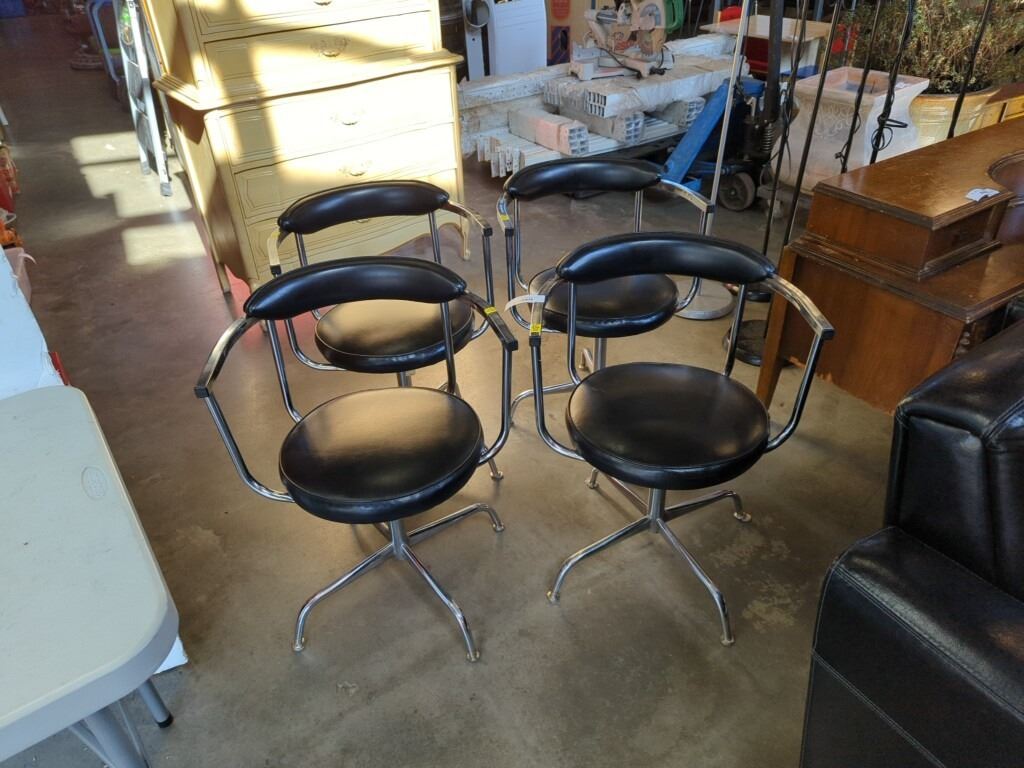4 BLACK LEATHER LOOK SWIVEL CHAIRS