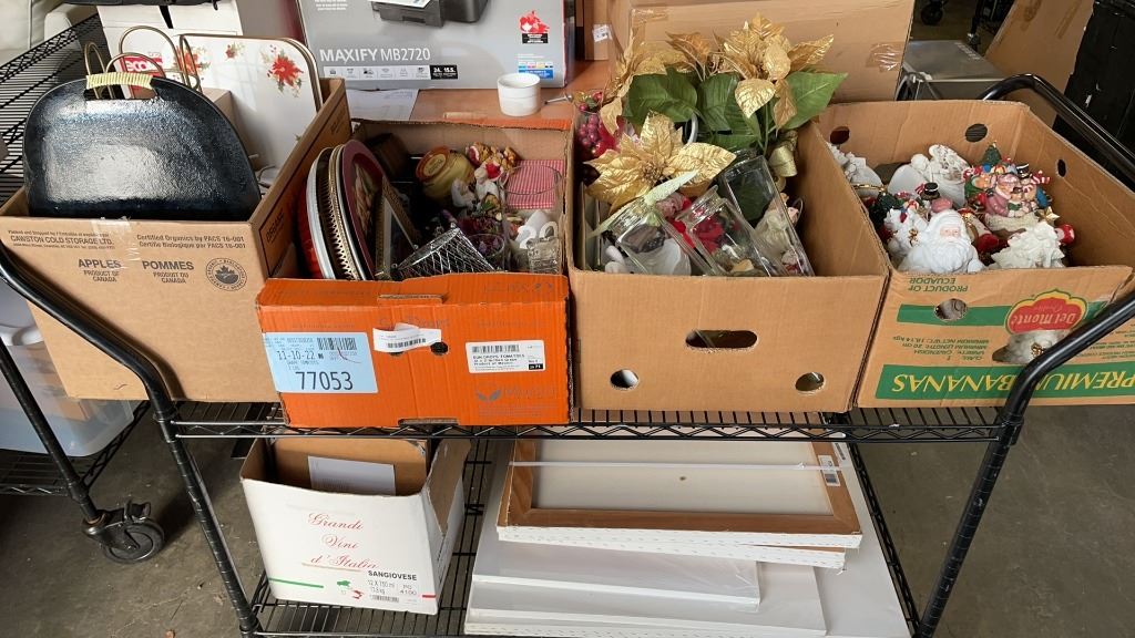 4 BOXES OF CHRISTMAS DECOR AND ESTATE GOODS