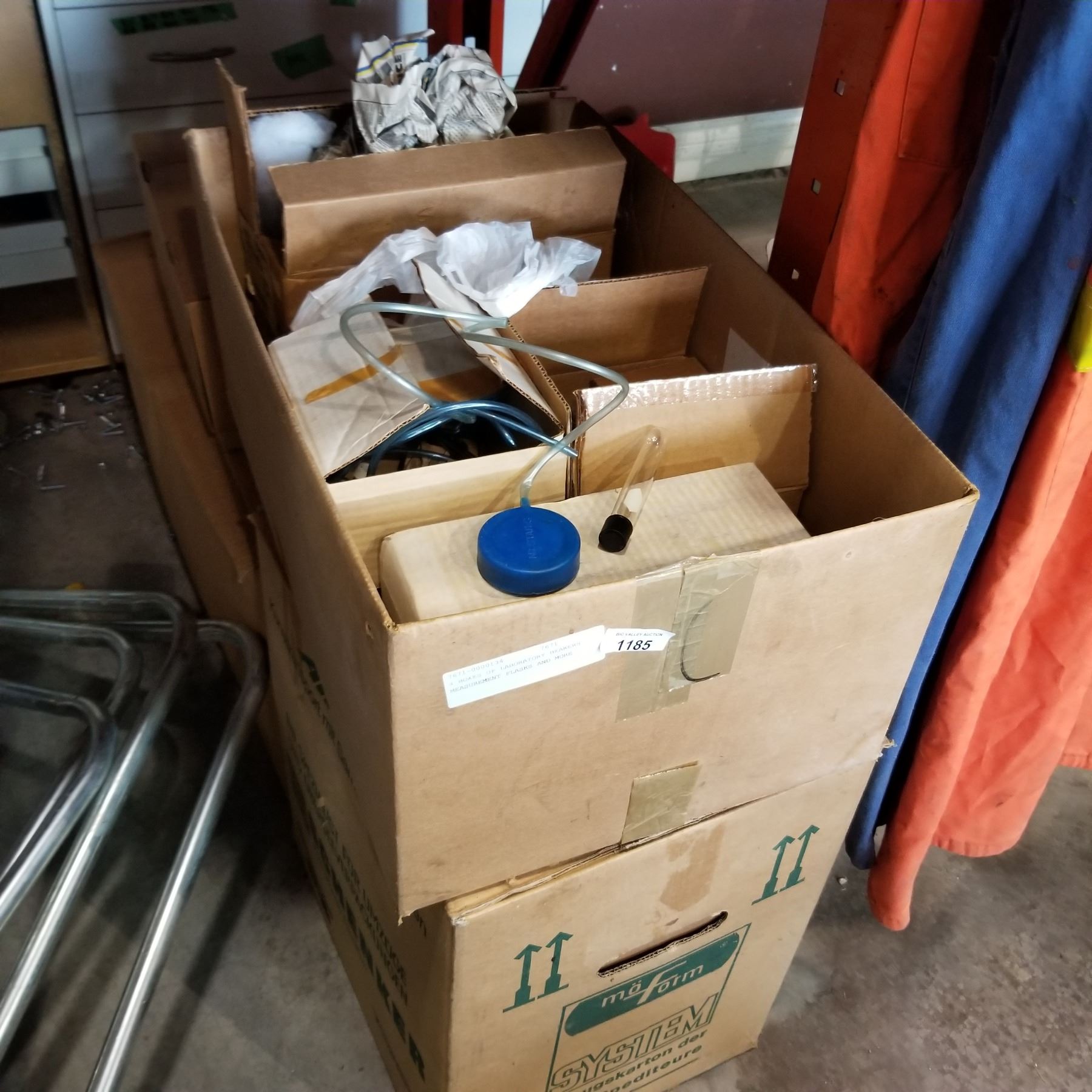 4 BOXES OF LABORATORY BEAKERS MEASUREMENT FLASKS AND MORE