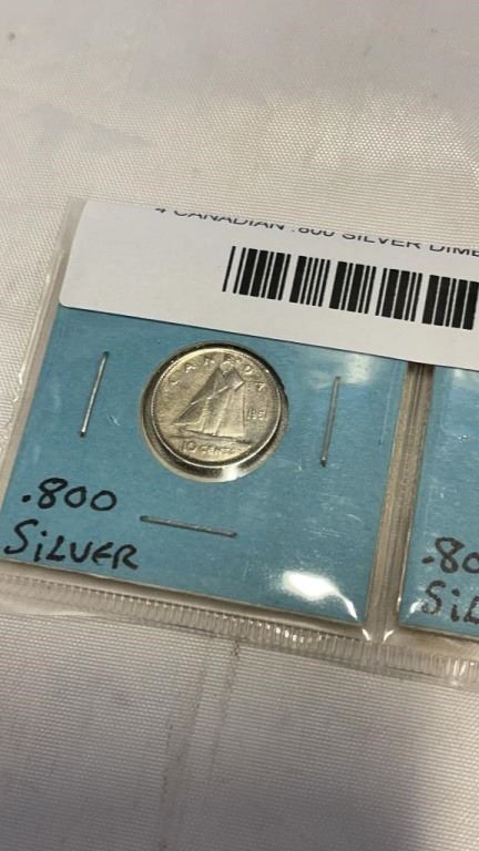 4 CANADIAN .800 SILVER DIMES GEORGE VI AND ELIZABETH II 1951-1954