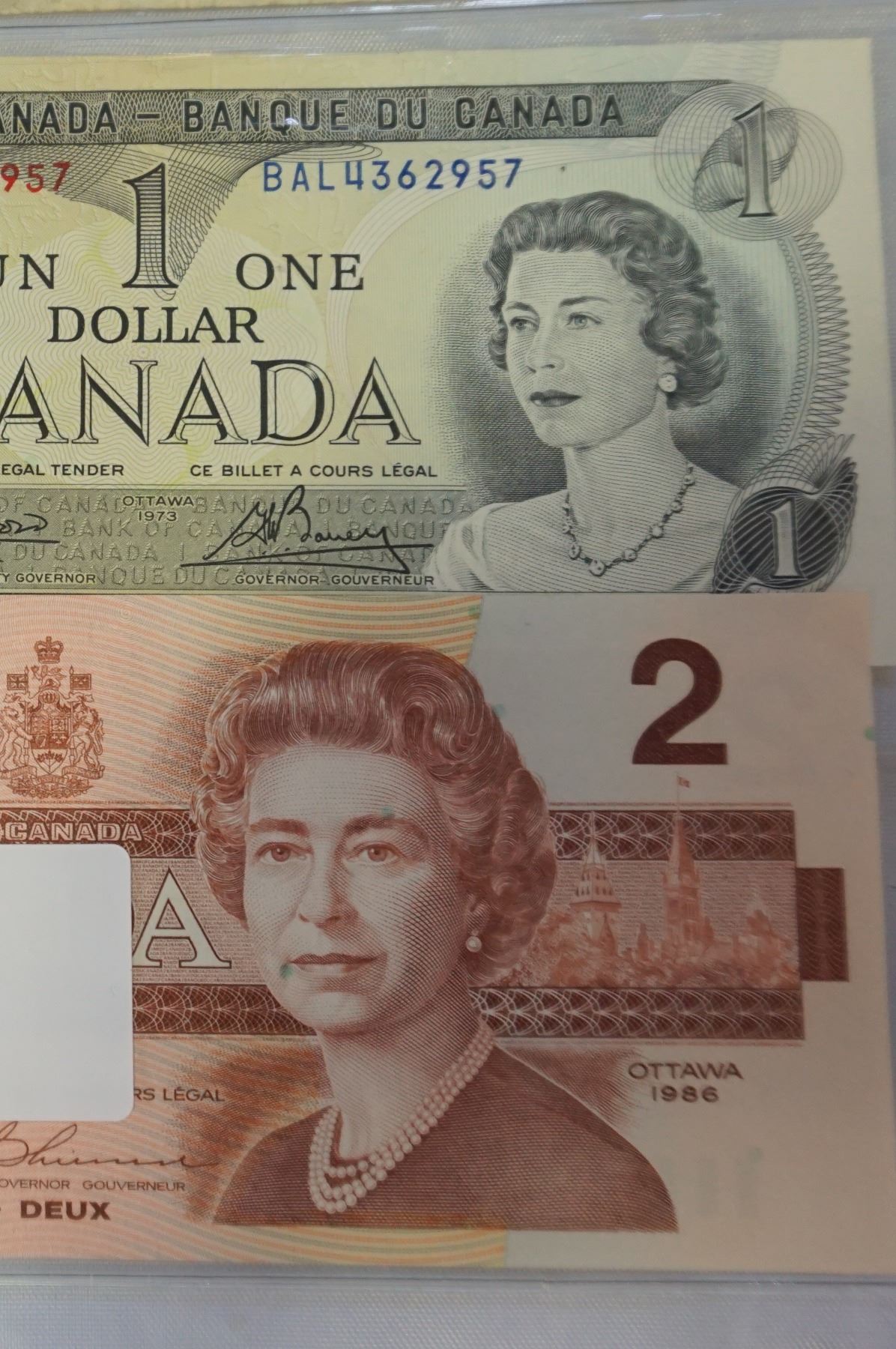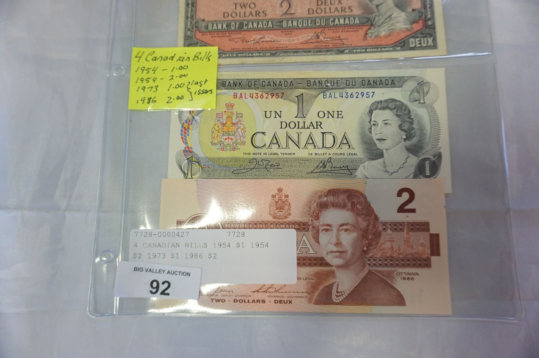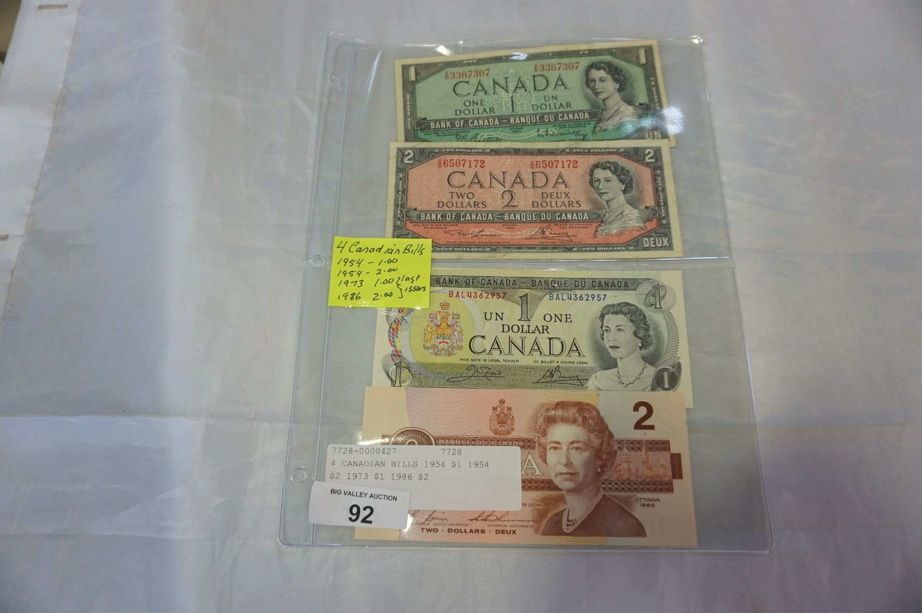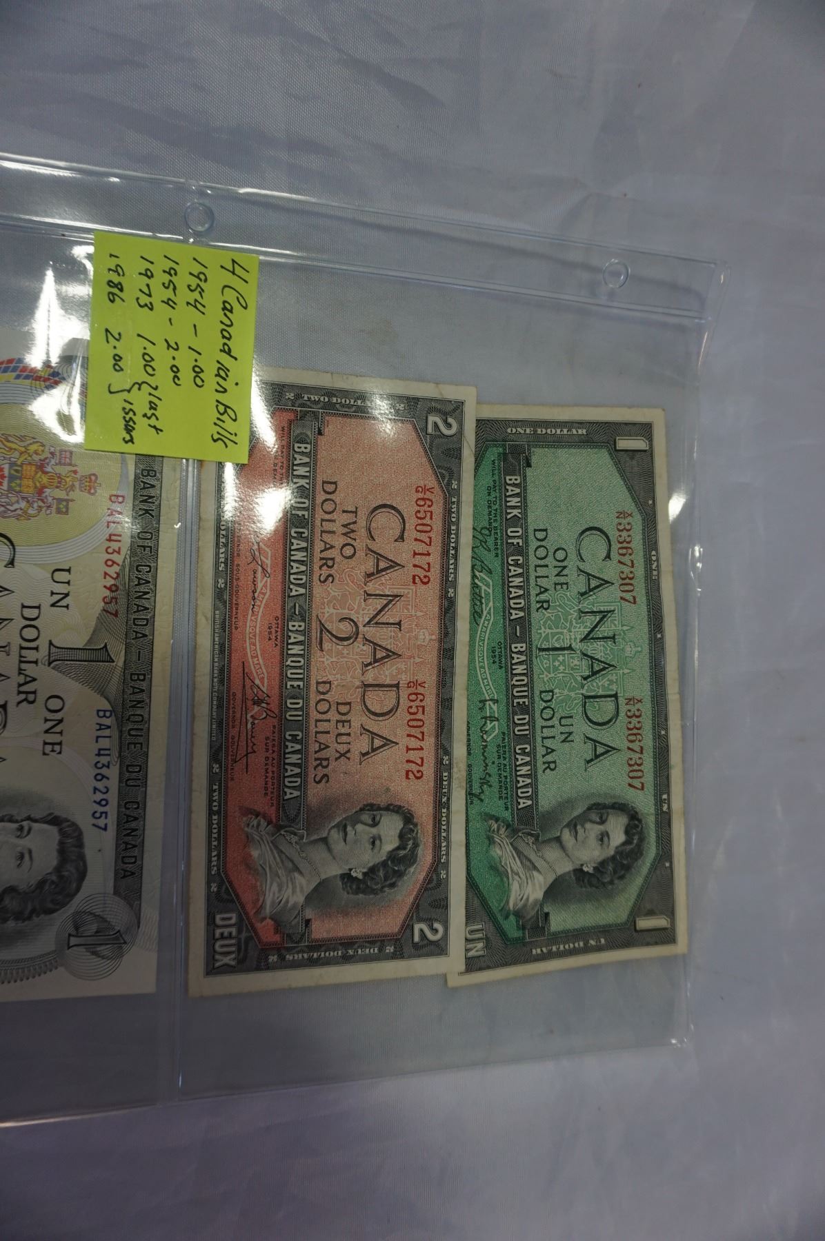 4 CANADIAN BILLS 1954 $1 1954 $2 1973 $1 1986 $2