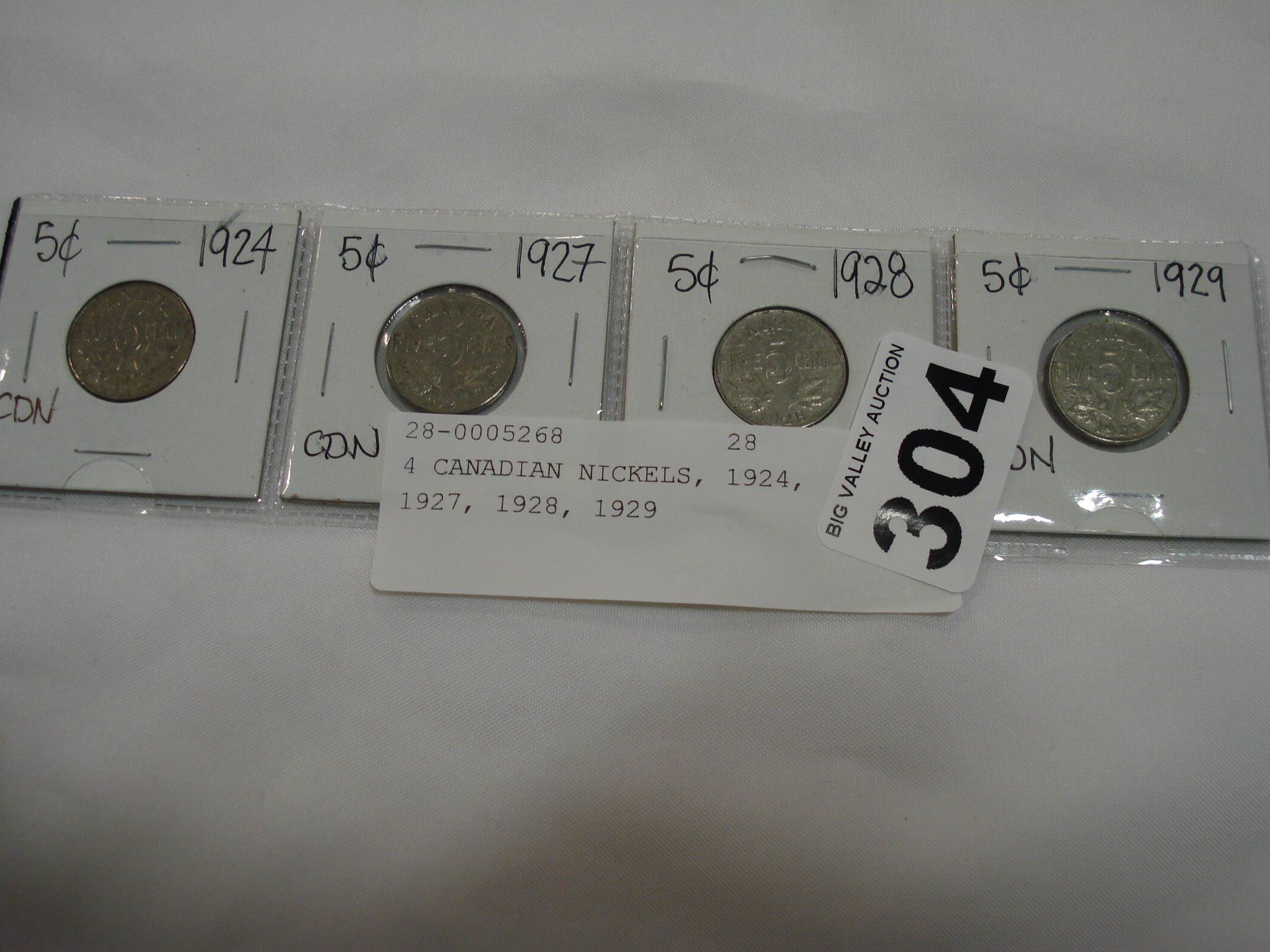 4 CANADIAN NICKELS, 1924, 1927, 1928, 1929