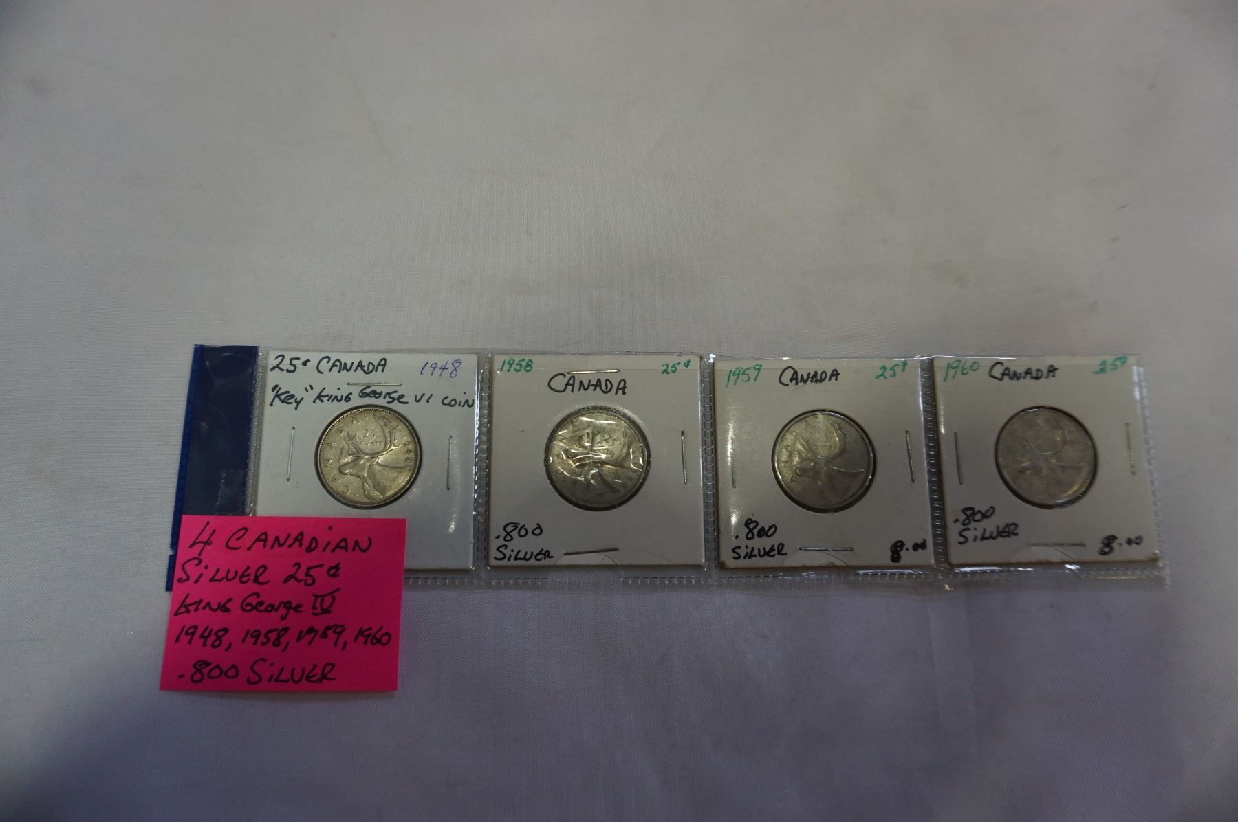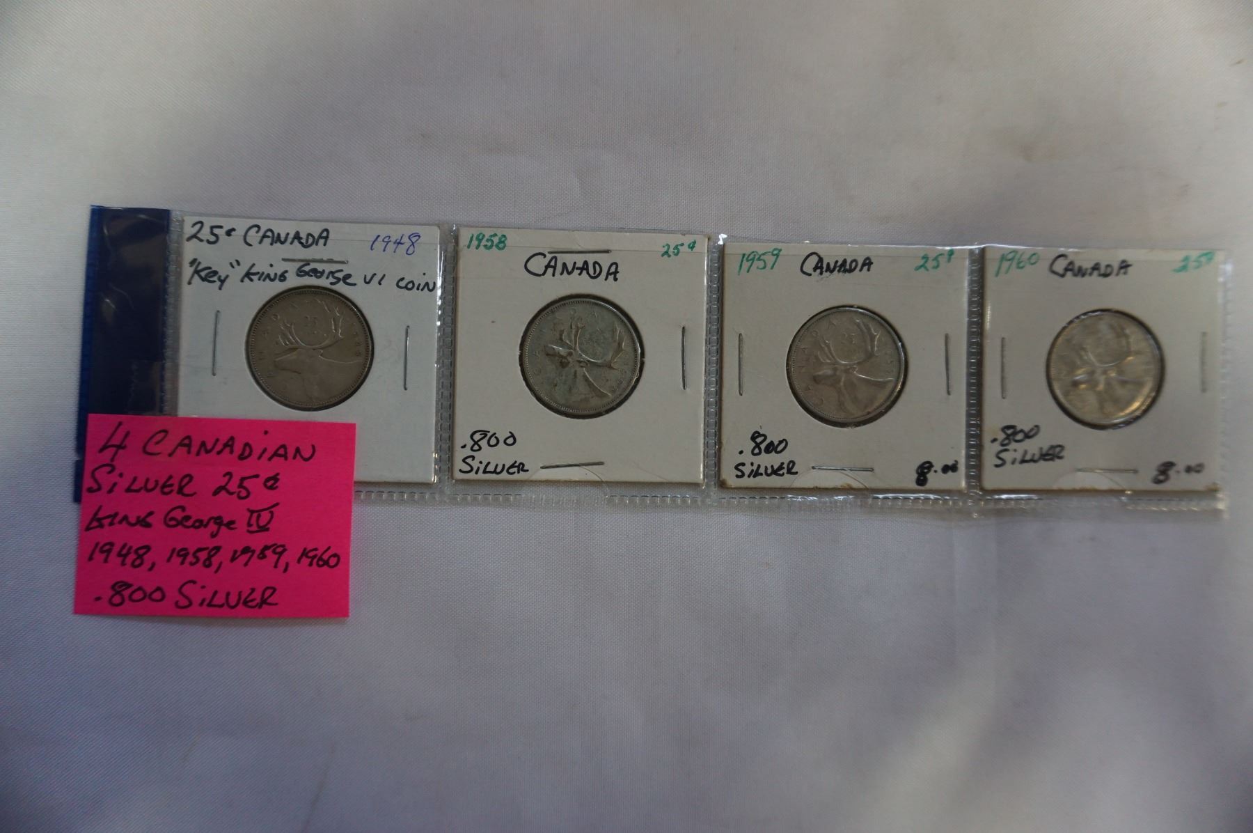 4 CANADIAN SILVER KING GEORGE IV 25c 1948,58,59,60