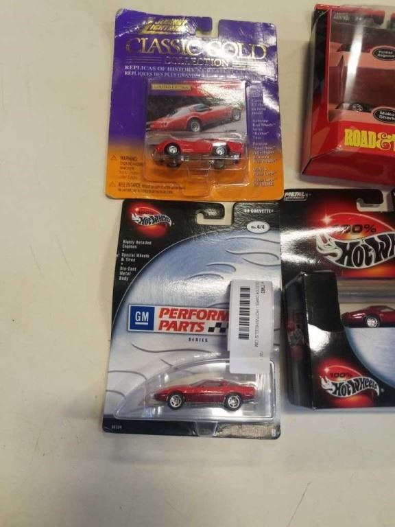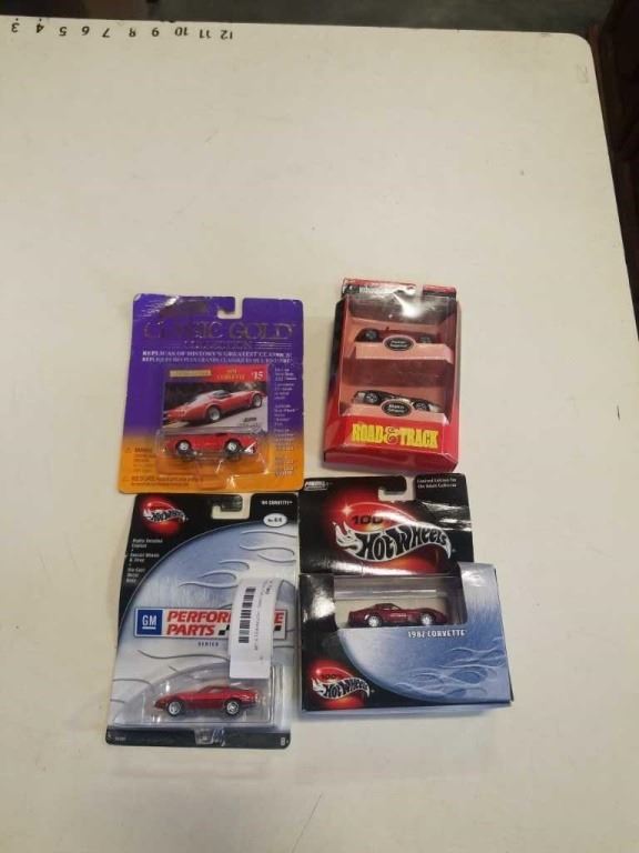 4 COLLECTOR CARS - HOTWHEELS GM SERIES AND CORVETTE, ROAD TRACK MAKO SHARK AND PONTIAC REGEOUS AND J