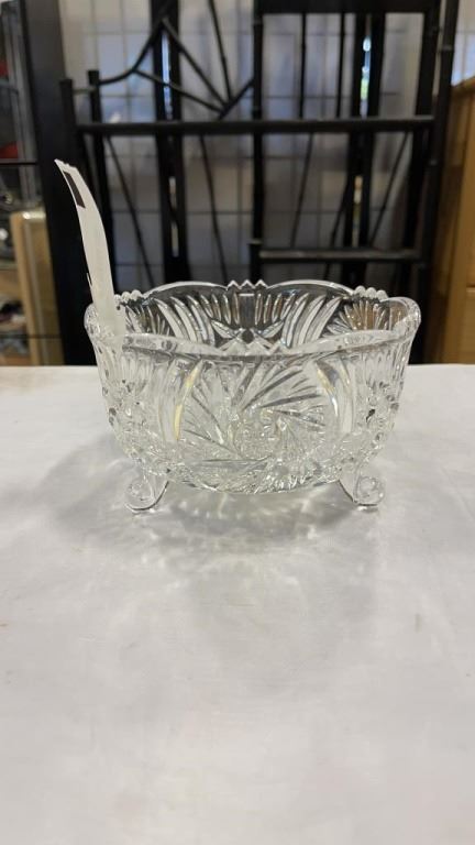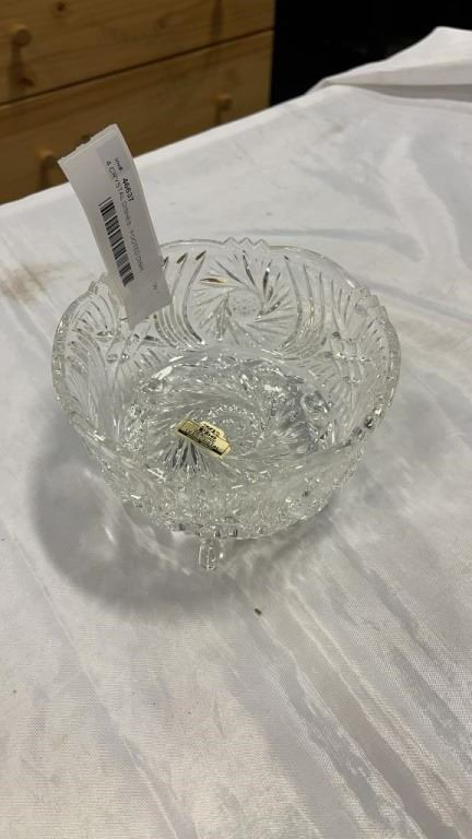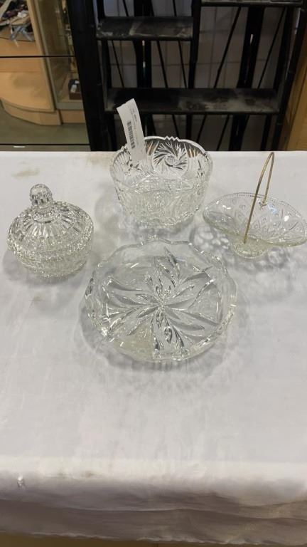 4 CRYSTAL DISHES - FOOTED DISH, BASKET, LIDDED DISH