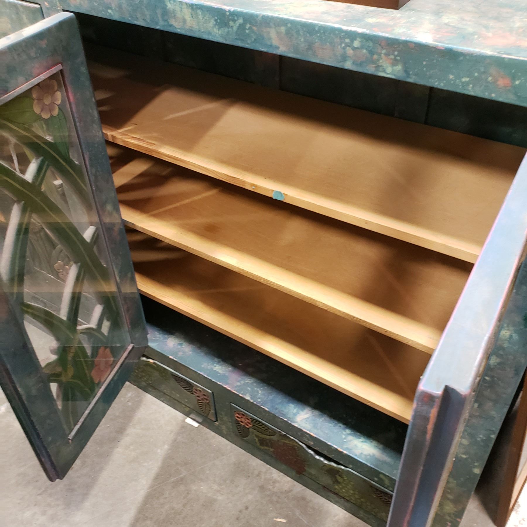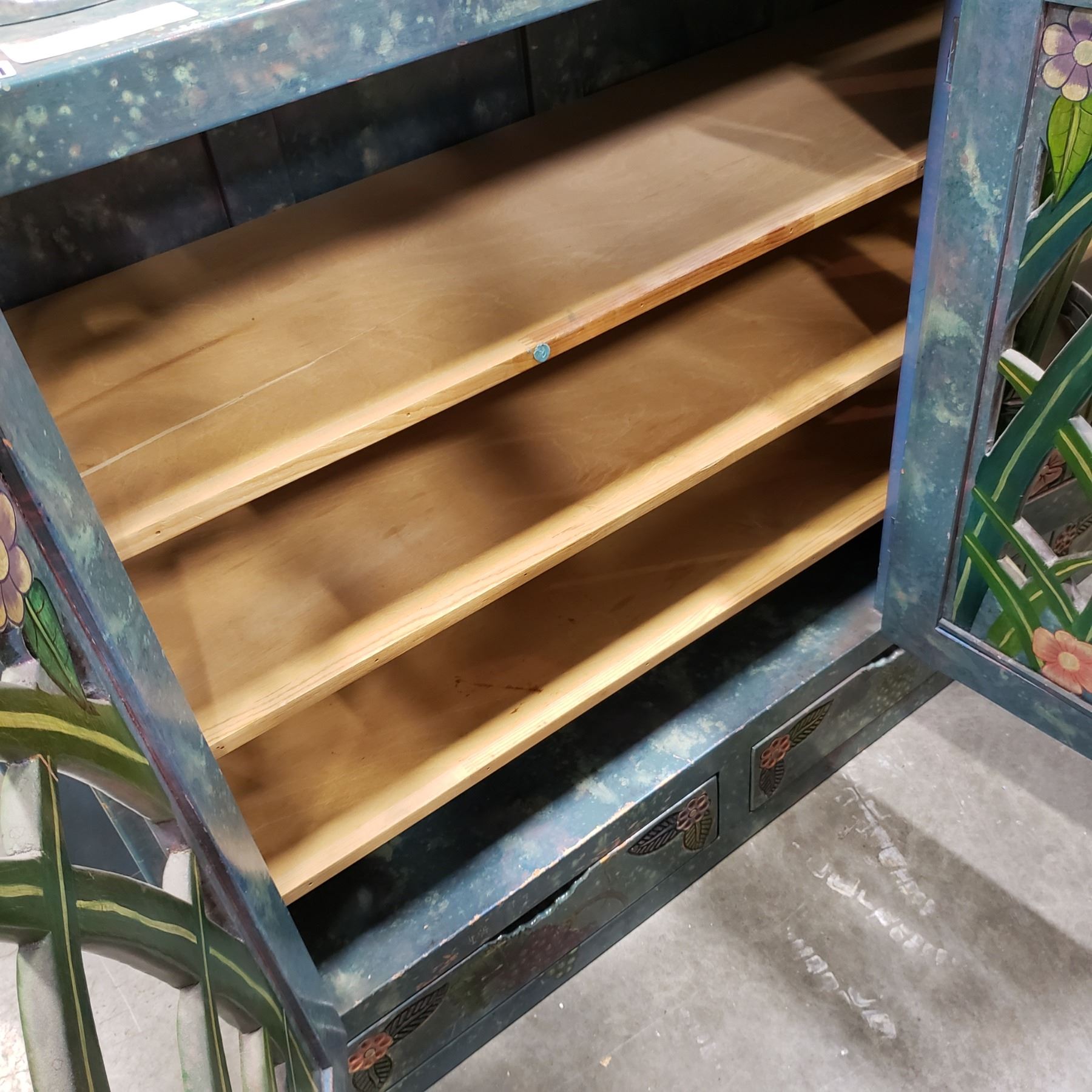 4 DOOR SERVING DISPLAY CABINET HAND PAINTED W/ 3 DRAWER