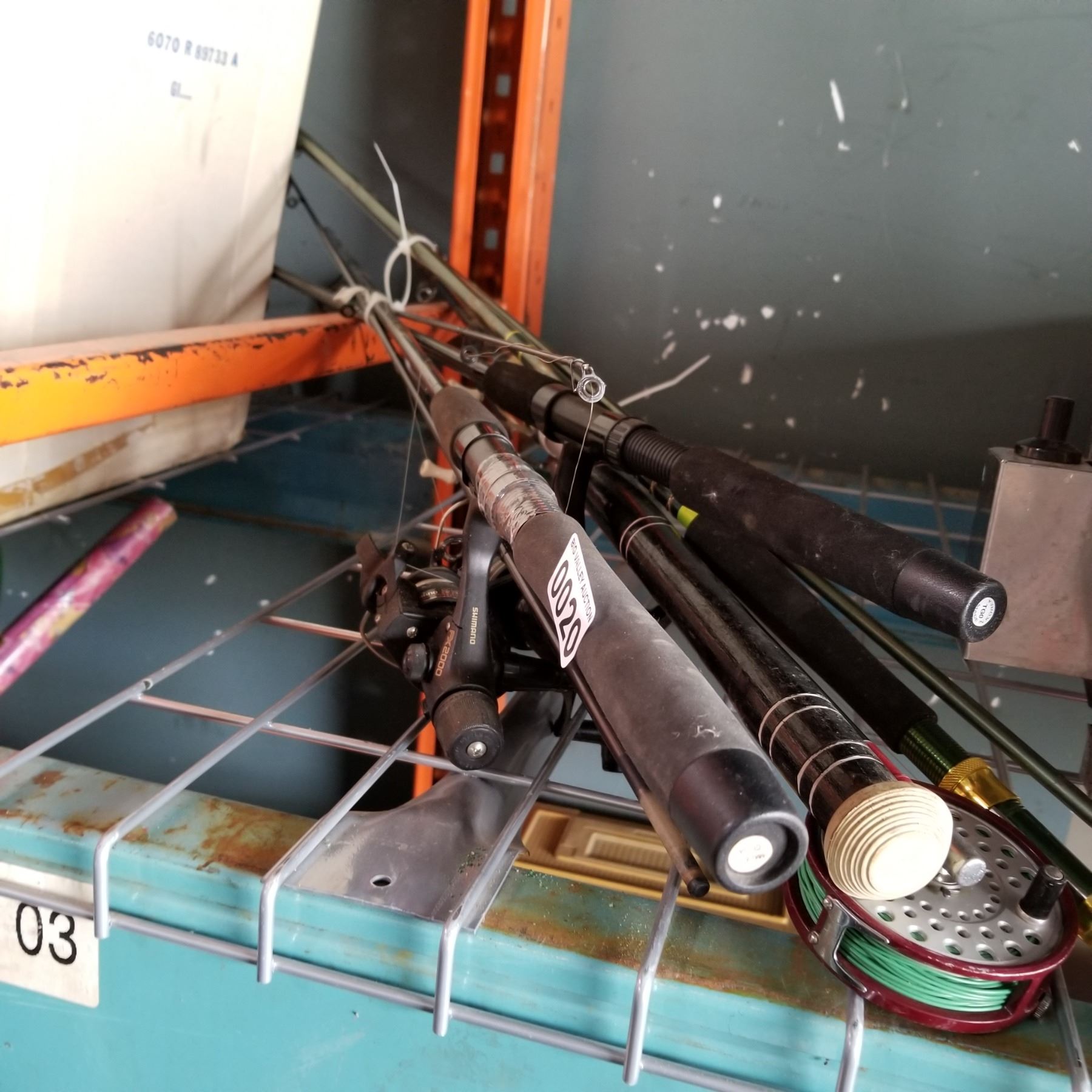 4 FISHING RODS - DAIWA, SHIMANO, AND OTHERS W/ REELS