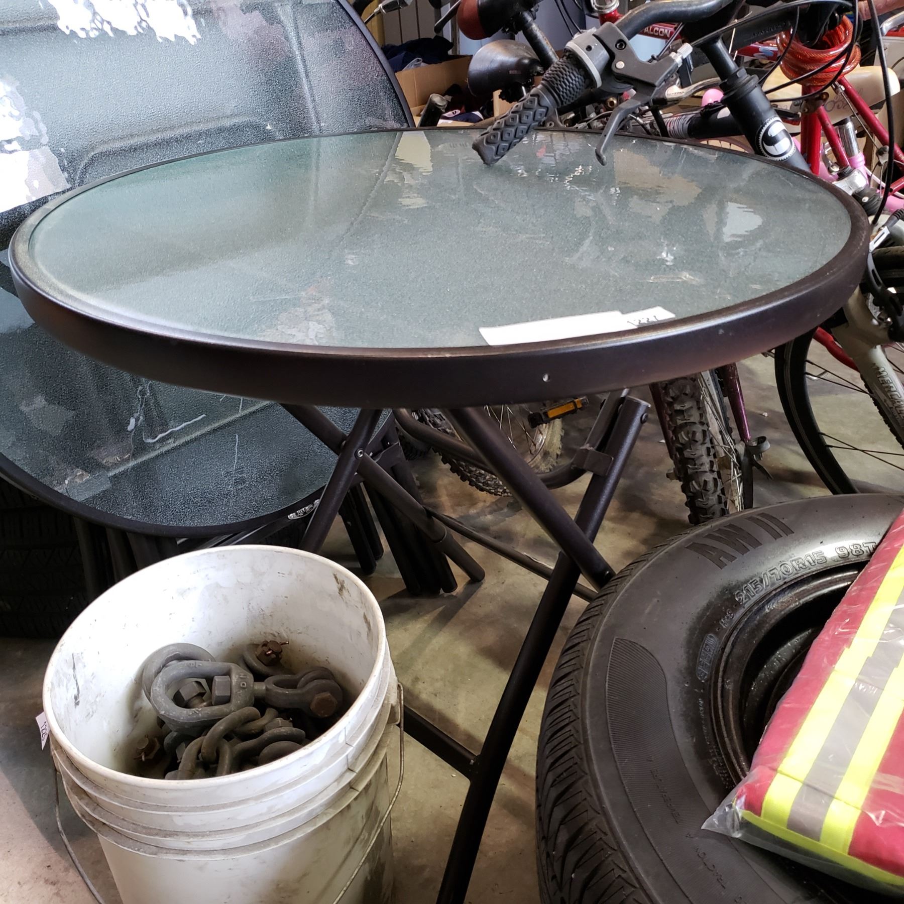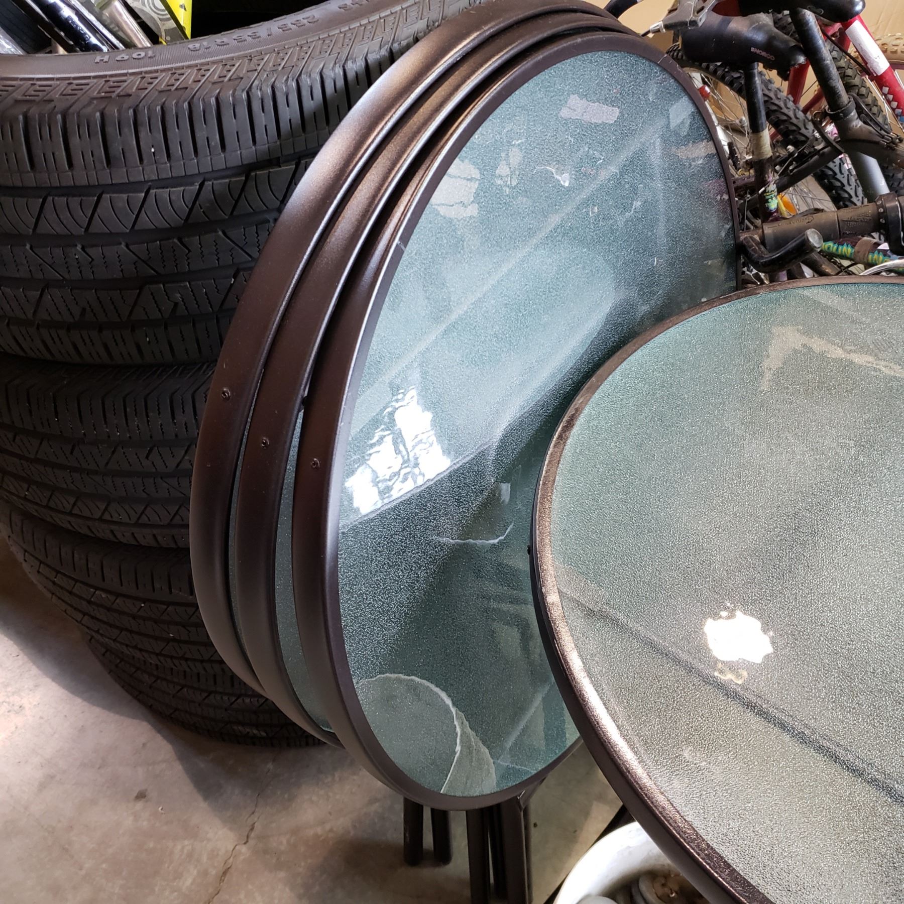 4 FOLDING ROUND GLASS PATIO TABLES