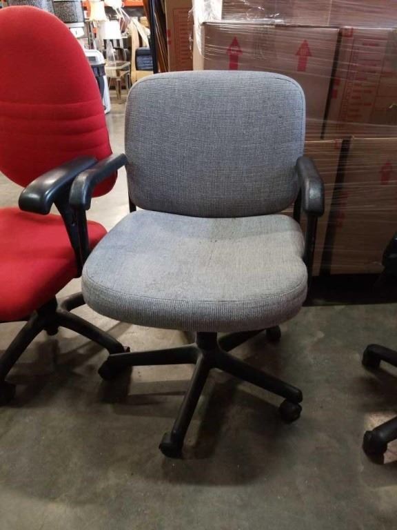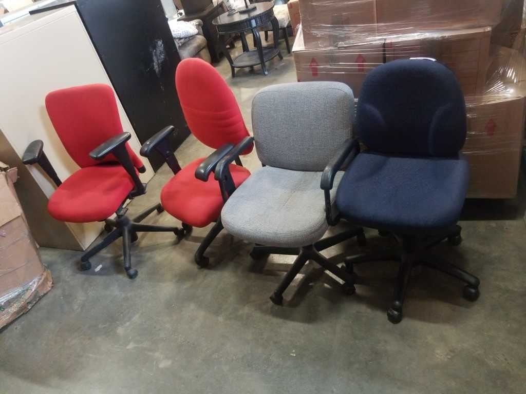4 GAS LIFT OFFICE CHAIRS BLUE, ORANGE AND GREY