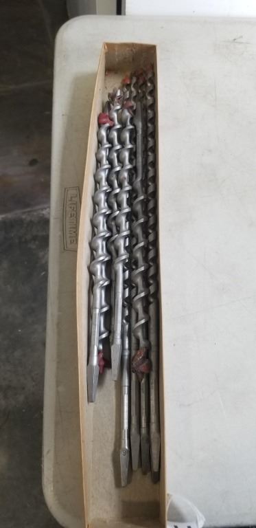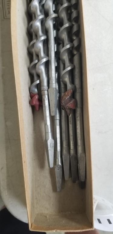 4 IRVING #6 12" WOOD DRILL BIT AND 5 IRVING #11 8" WOOD DRILL BIT