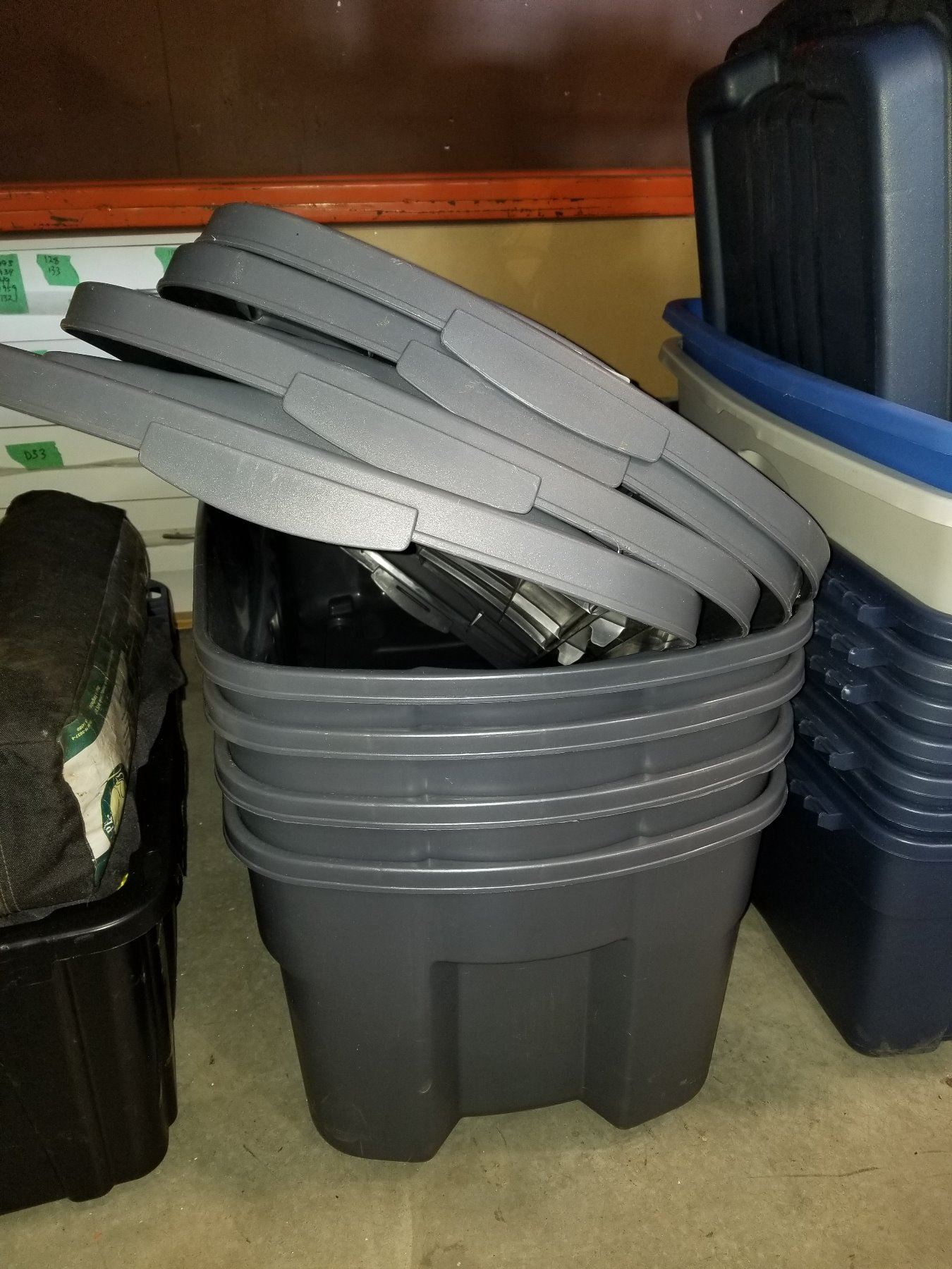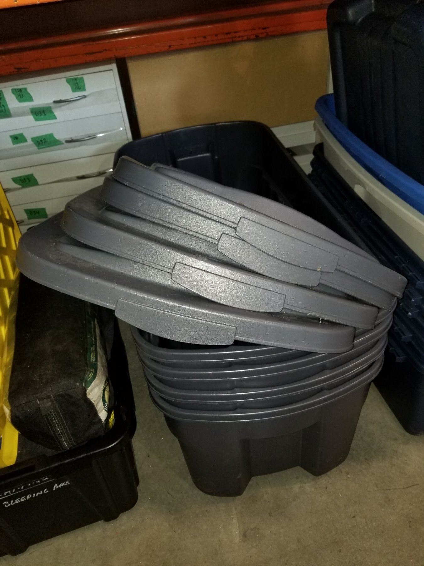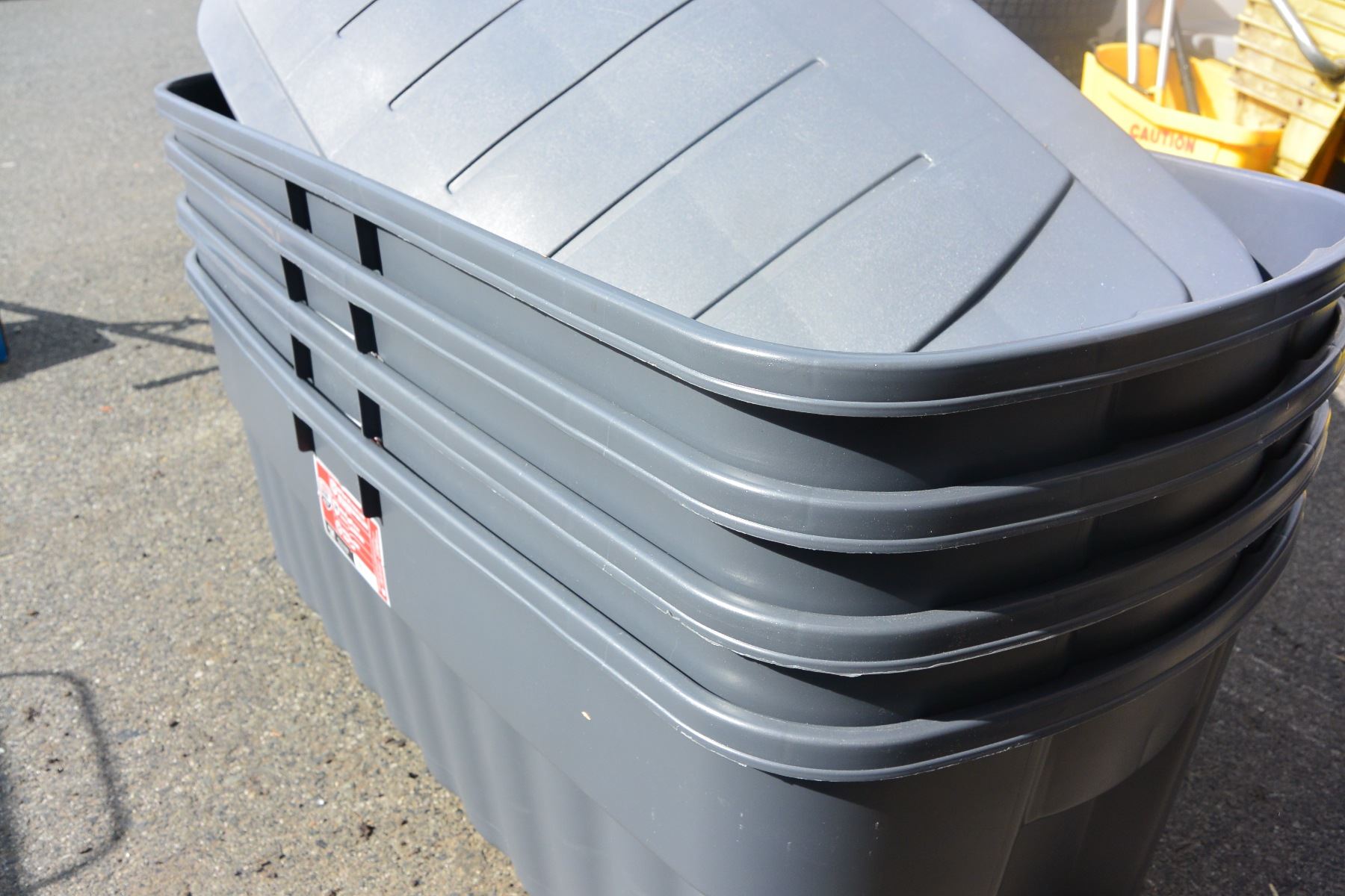 4 LARGE RUBBERMAID TOTES W/ LIDS