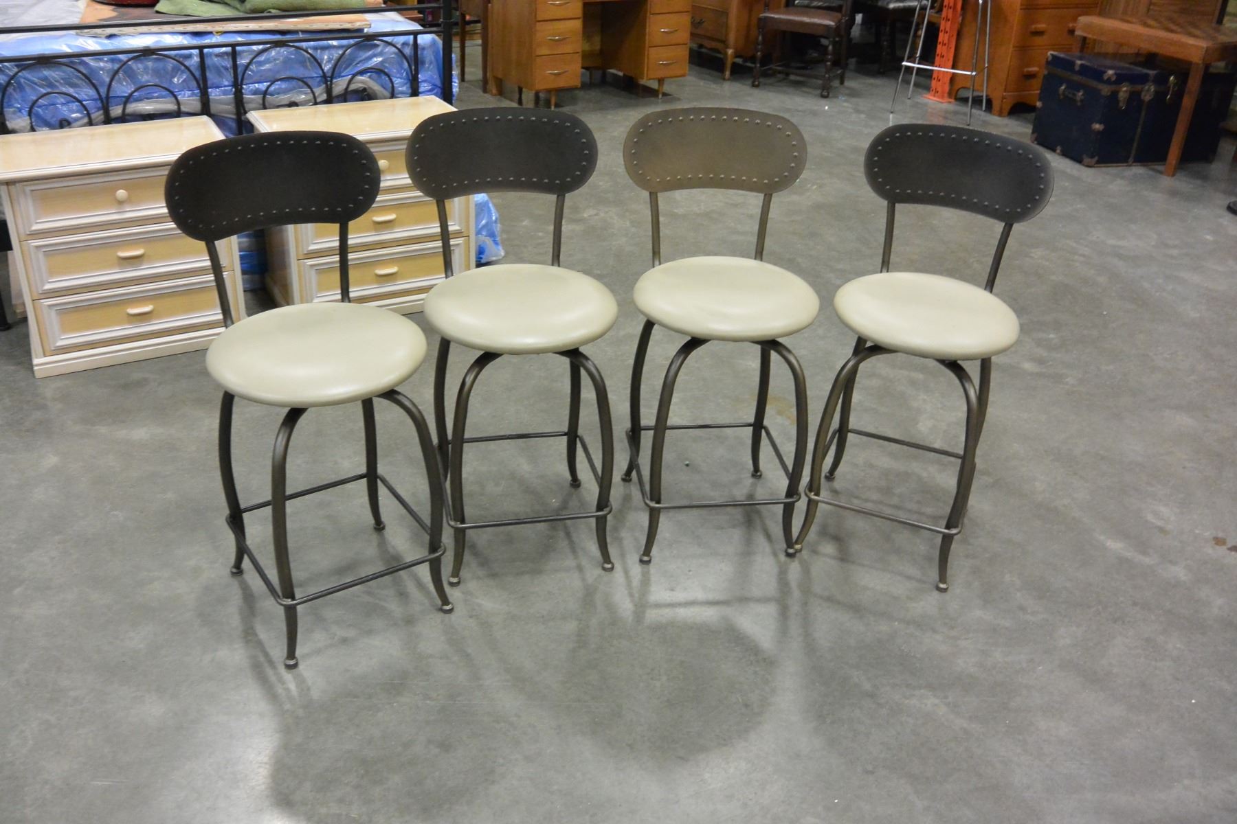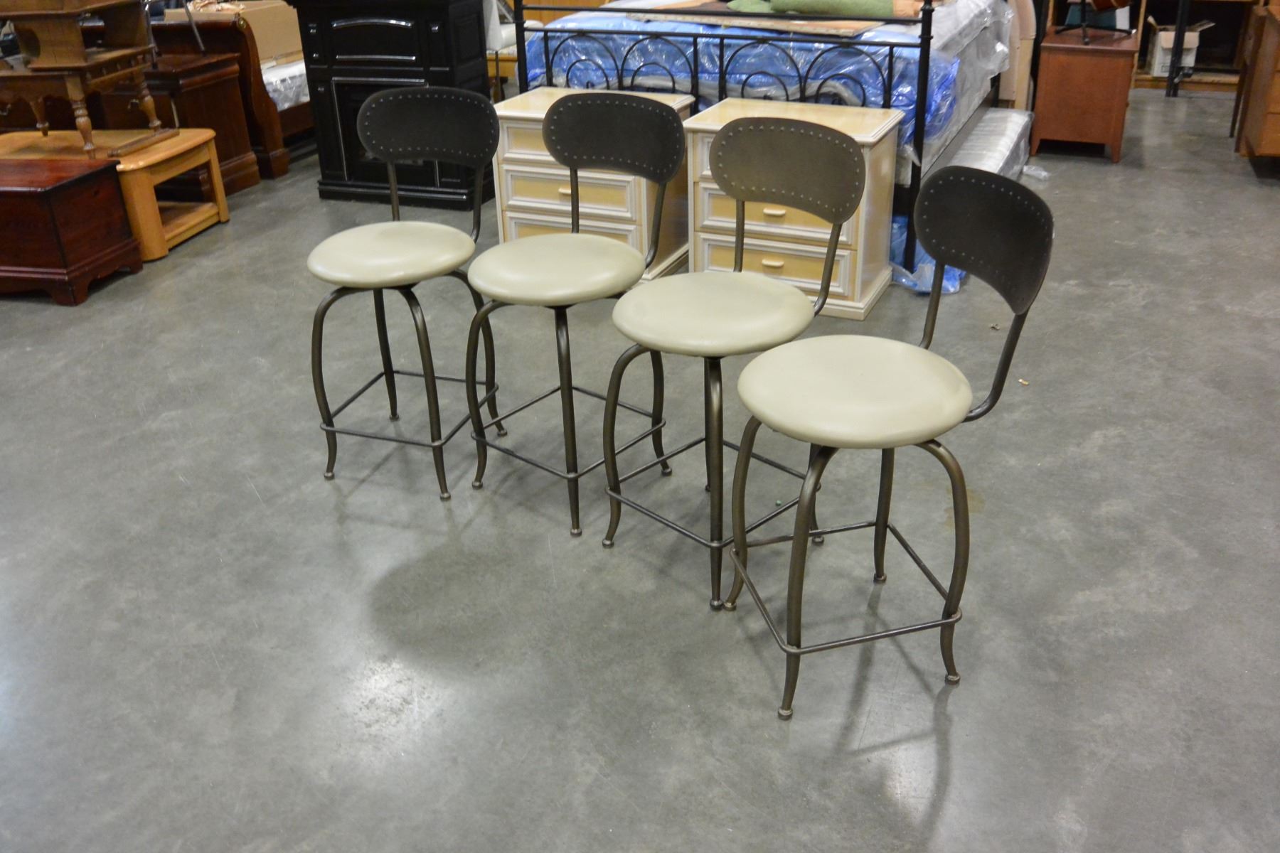 4 LEATHER AND METAL STOOLS