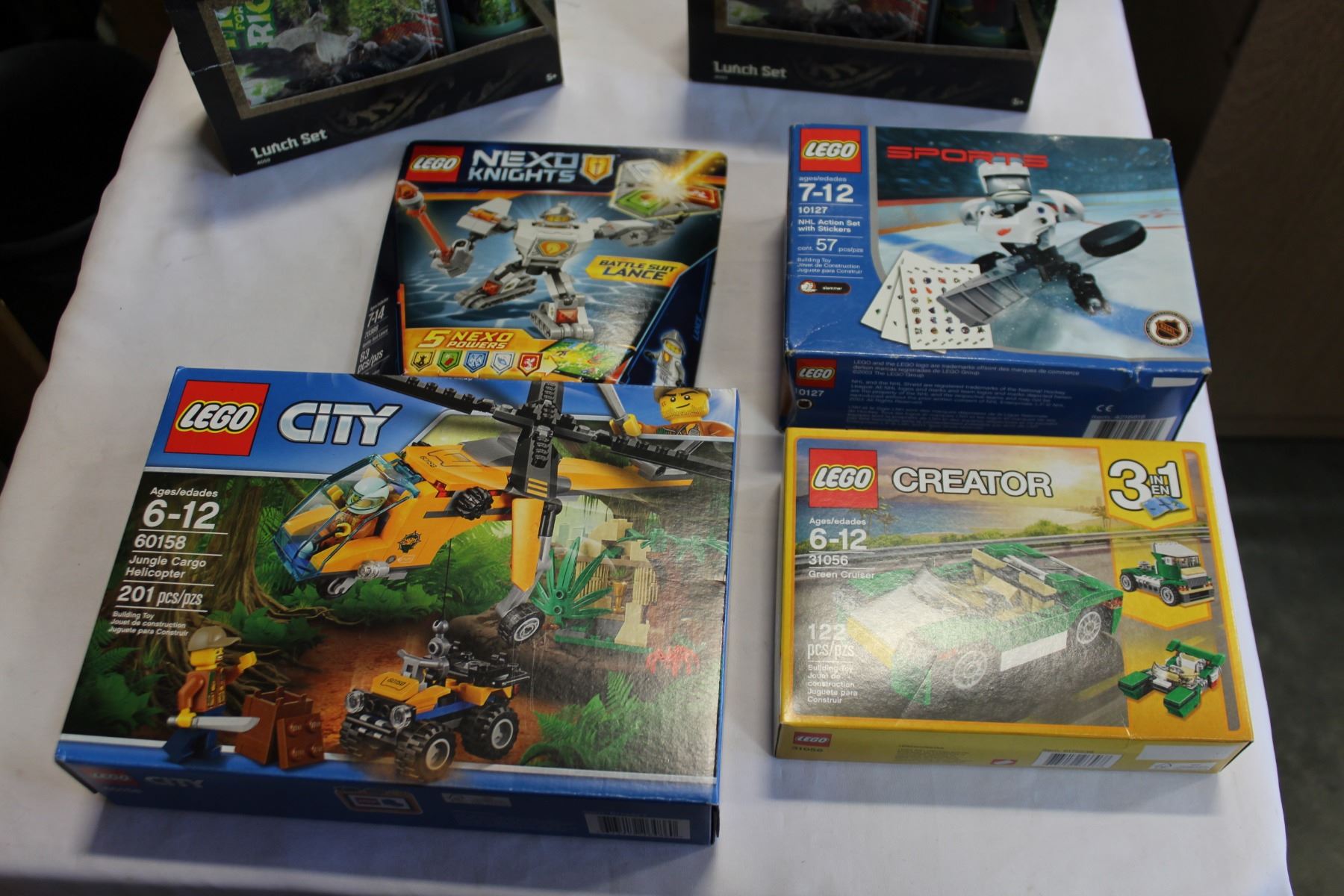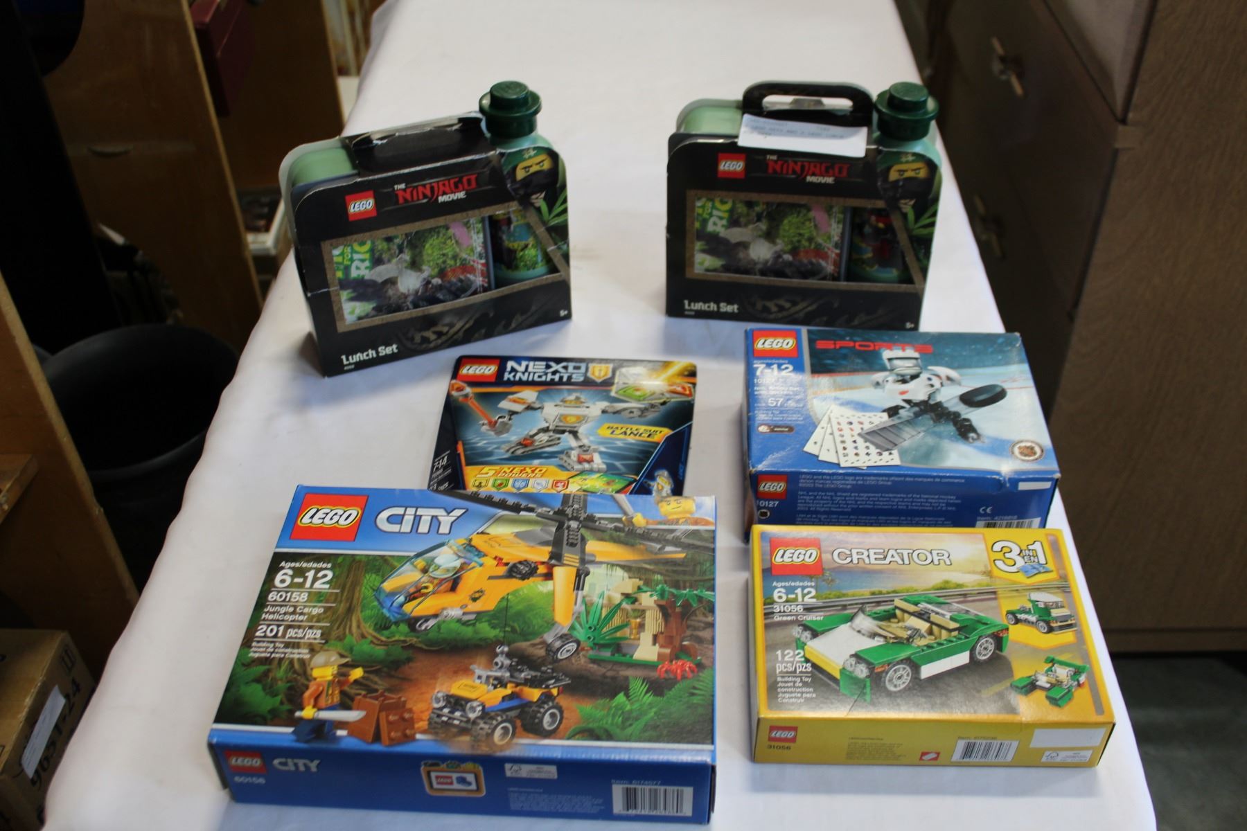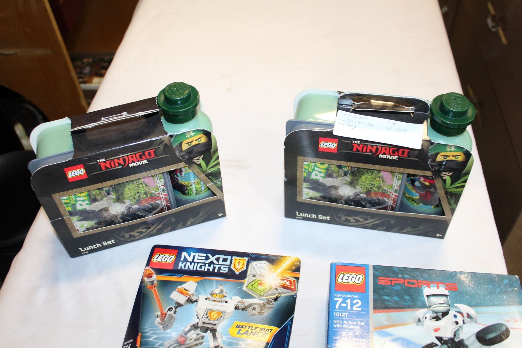 4 LEGO SETS AND 2 LEGO LUNCH BOX SETS