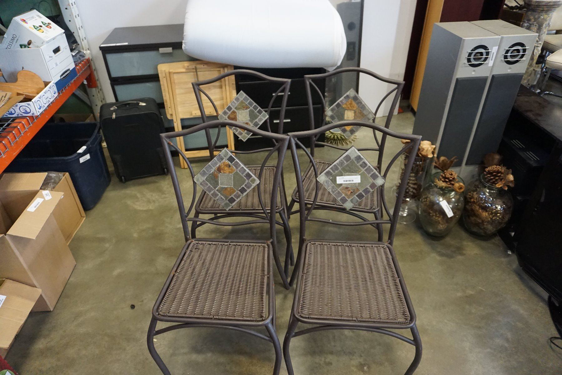4 METAL WICKER LOOK SEAT PATIO CHAIRS WITH TILE ACCENTS