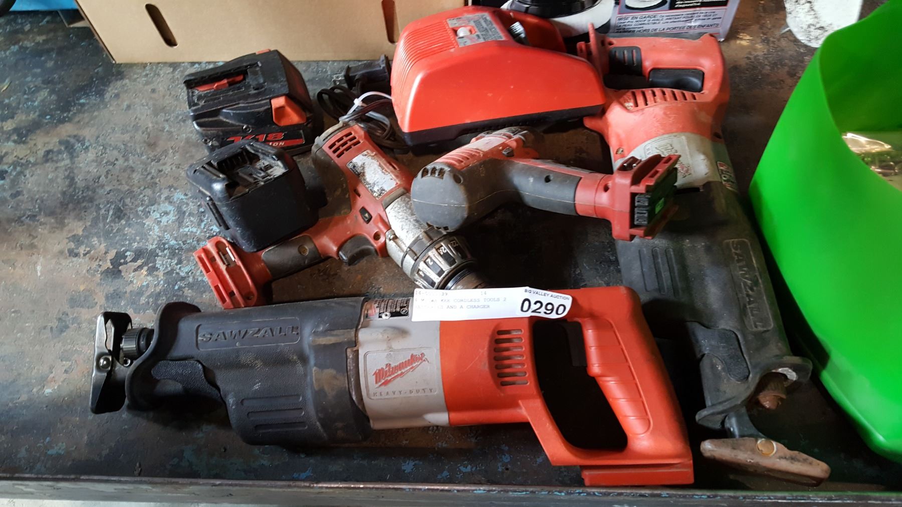 4 MILWAUKEE CORDLESS TOOLS 2 BATTERIES AND A CHARGER
