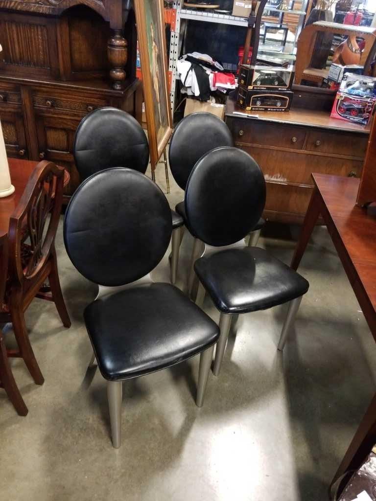 4 MODERN METAL AND LEATHER DINING CHAIRS