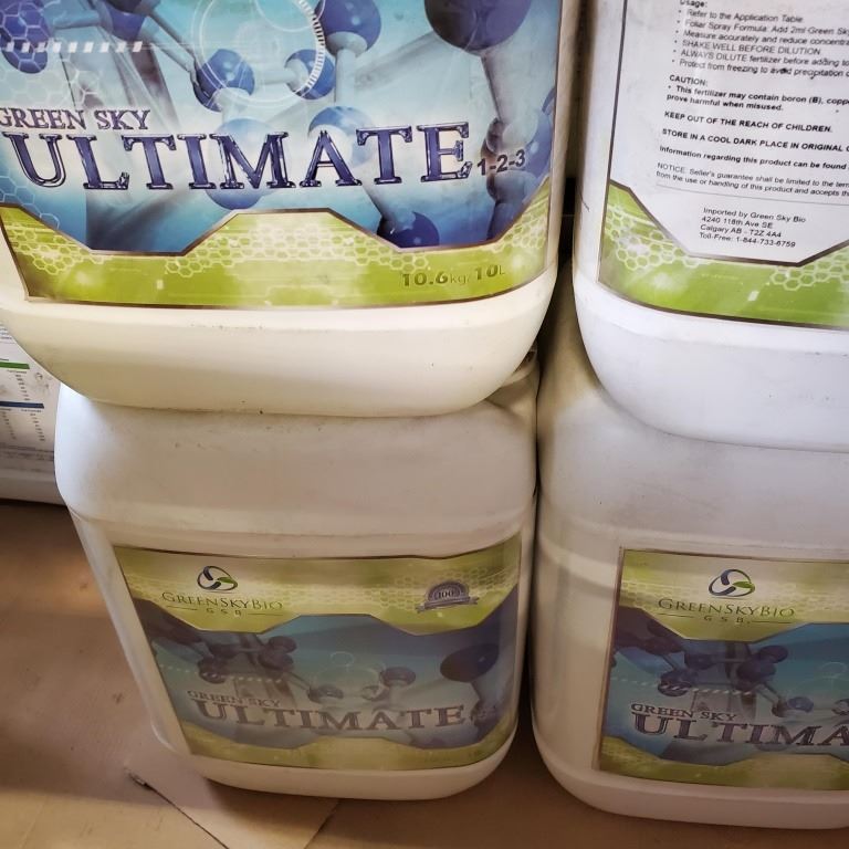 4 NEW 10L JUGS OF GREEN SKY ULTIMATE 1-2-3 PLANT NUTRIENT