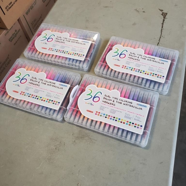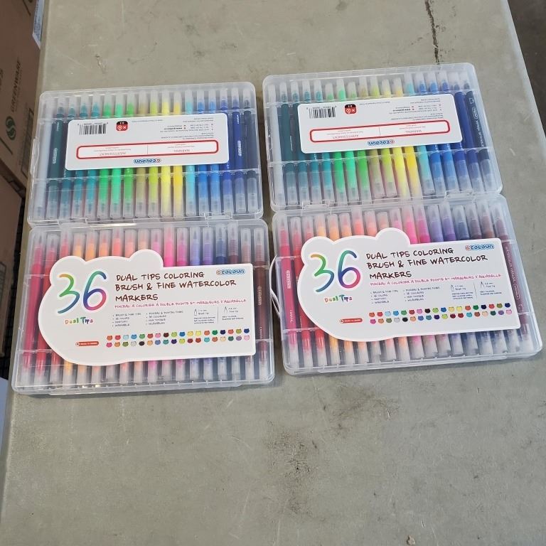 4 NEW 36PC DUAL TIP WATERCOLOR MARKERS WITH FINE AND BRUSH TIPS