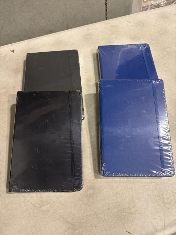 4 NEW A5 SIZE LEATHER NOTEBOOKS, 'MOLESKIN STYLE', 2 BLUE, 2 BLACK