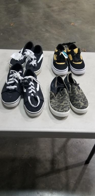 4 NEW BOYS AND YOUTH SNEAKERS - SIZES 1-3 AND 8