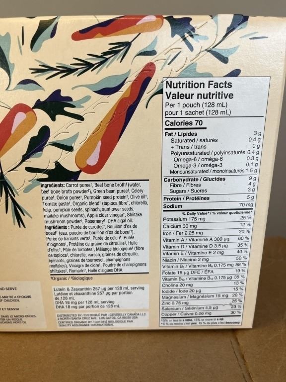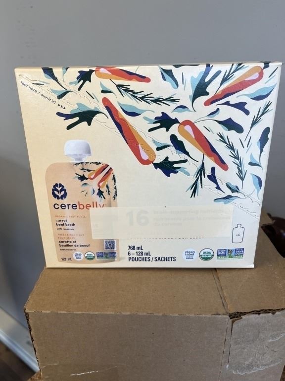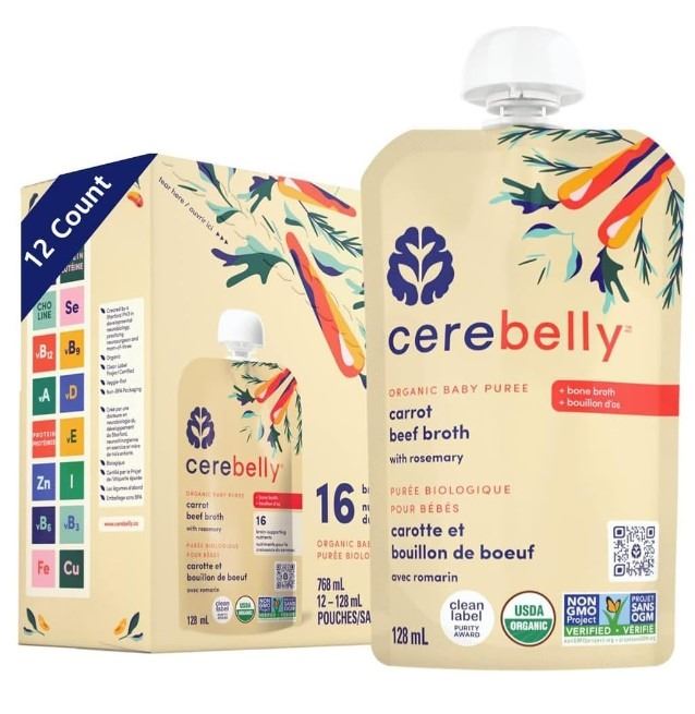 4 NEW CASES OF CEREBELLY CARROT AND BEEF BROTH ORGANIC BABY PUREE, 12 POUCHES PER CASE, BEST BEFORE SEPT 16/24