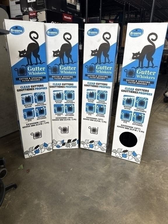 4 NEW CASES OF GUTTER WHISKERS, 72FT TOTAL, EACH CASE HAS 6-3FT LENGTHS RETAIL VALUE $170 PLUS