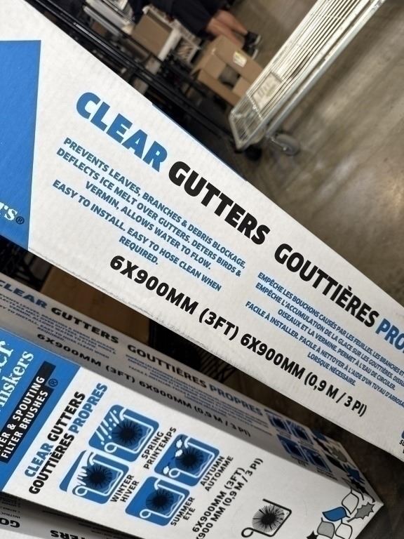4 NEW CASES OF GUTTER WHISKERS, 72FT TOTAL, EACH CASE HAS 6-3FT LENGTHS RETAIL VALUE $170 PLUS
