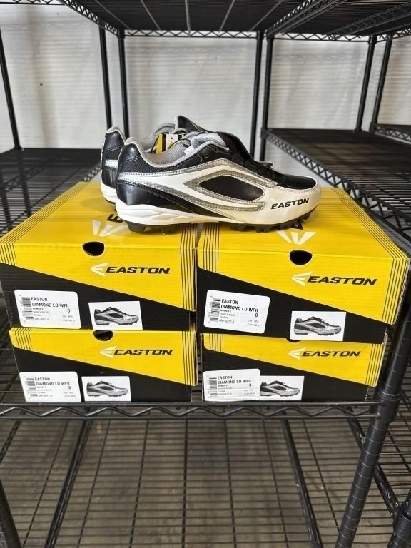 4 NEW EASTON DIAMOND LO WFII BASEBALL CLEATS SIZE WOMENS 8, BLACK / WHITE