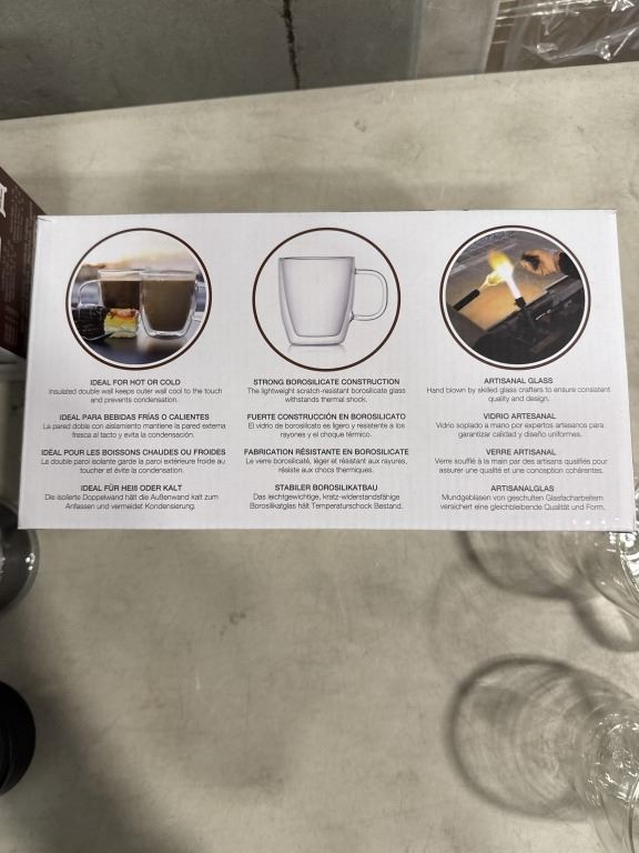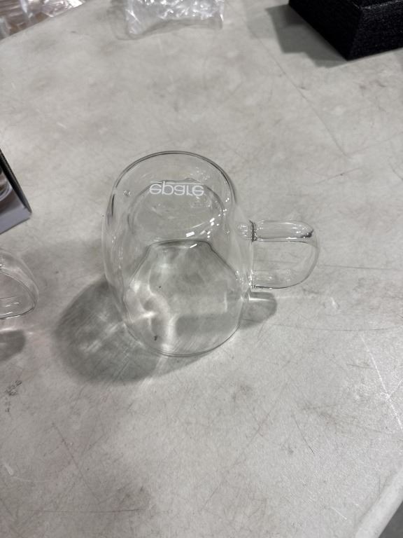 4 NEW EPARE DUAL WALL GLASS 12.OZ COFFEE MUGS AND STAINLESS COFFEE GRINDER