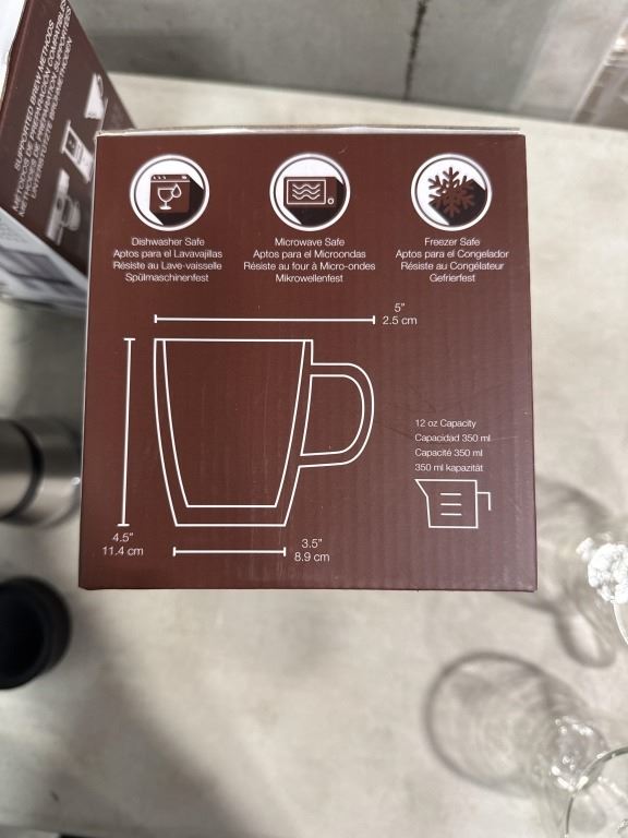 4 NEW EPARE DUAL WALL GLASS 12.OZ COFFEE MUGS AND STAINLESS COFFEE GRINDER