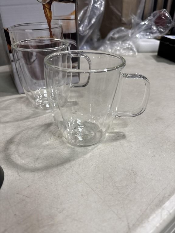 4 NEW EPARE DUAL WALL GLASS 12.OZ COFFEE MUGS AND STAINLESS COFFEE GRINDER