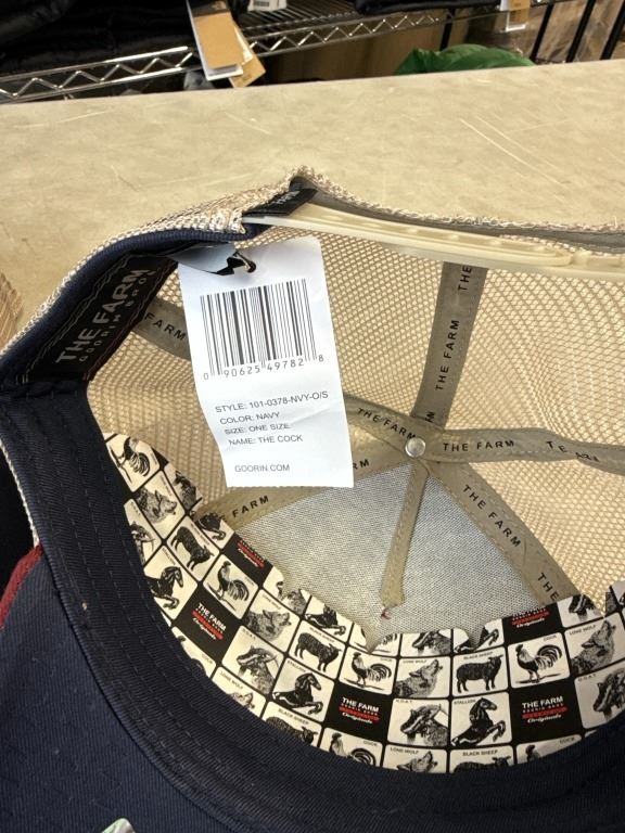4 NEW GOORIN BRO'S THE FARM HATS, 'COCK', RETAIL $55 EACH , $220 VALUE