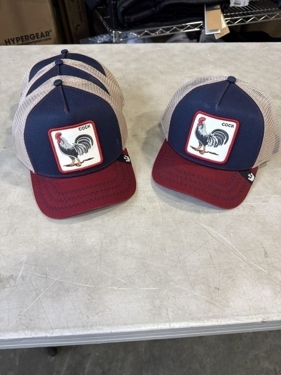 4 NEW GOORIN BRO'S THE FARM HATS, 'COCK', RETAIL $55 EACH , $220 VALUE