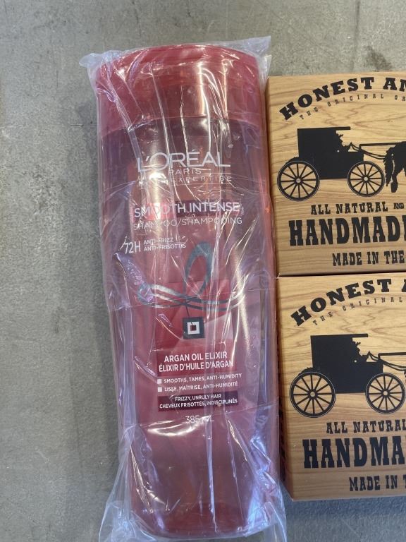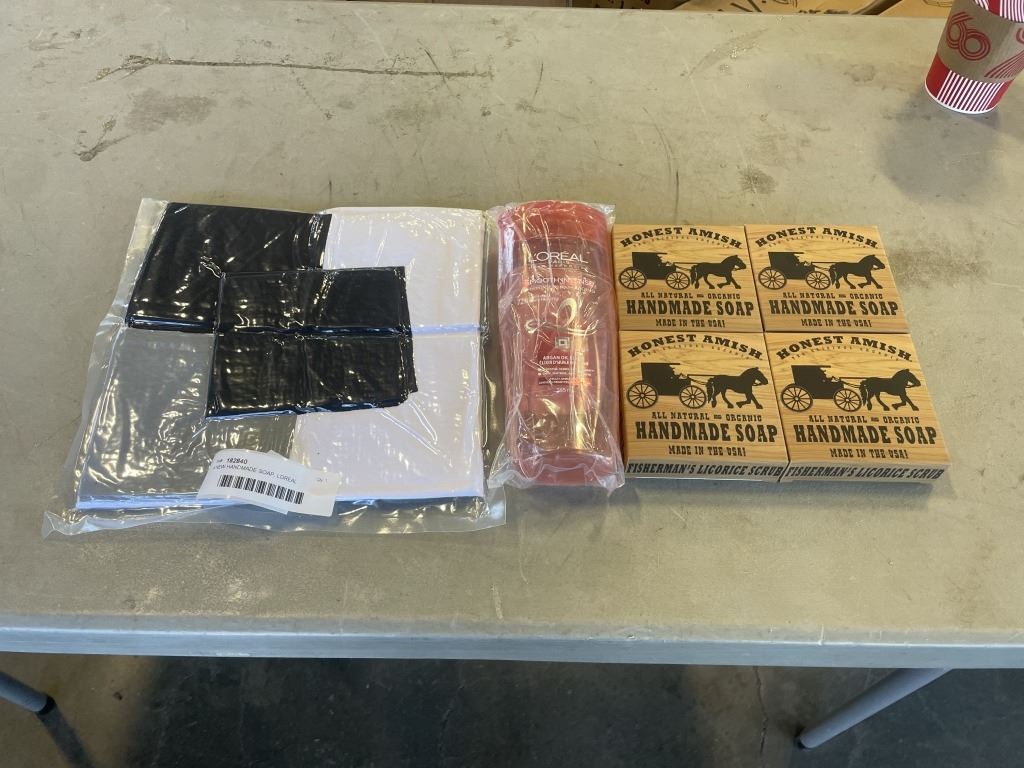 4 NEW HANDMADE SOAP, LOREAL SHAMPOO, AND PACK OF NECK BUFFS