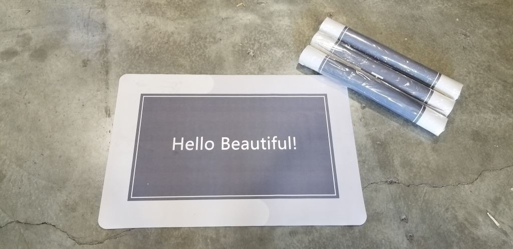 4 NEW 'HELLO BEAUTIFUL' BATHROOM NON-SLIP MATTS, 34 INCH X 23 INCH
