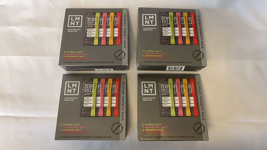 4 NEW LMNT RECHARGE VARIETY 12 PACK ELECTROLYTE DRINK MIX