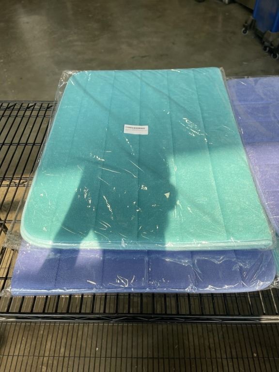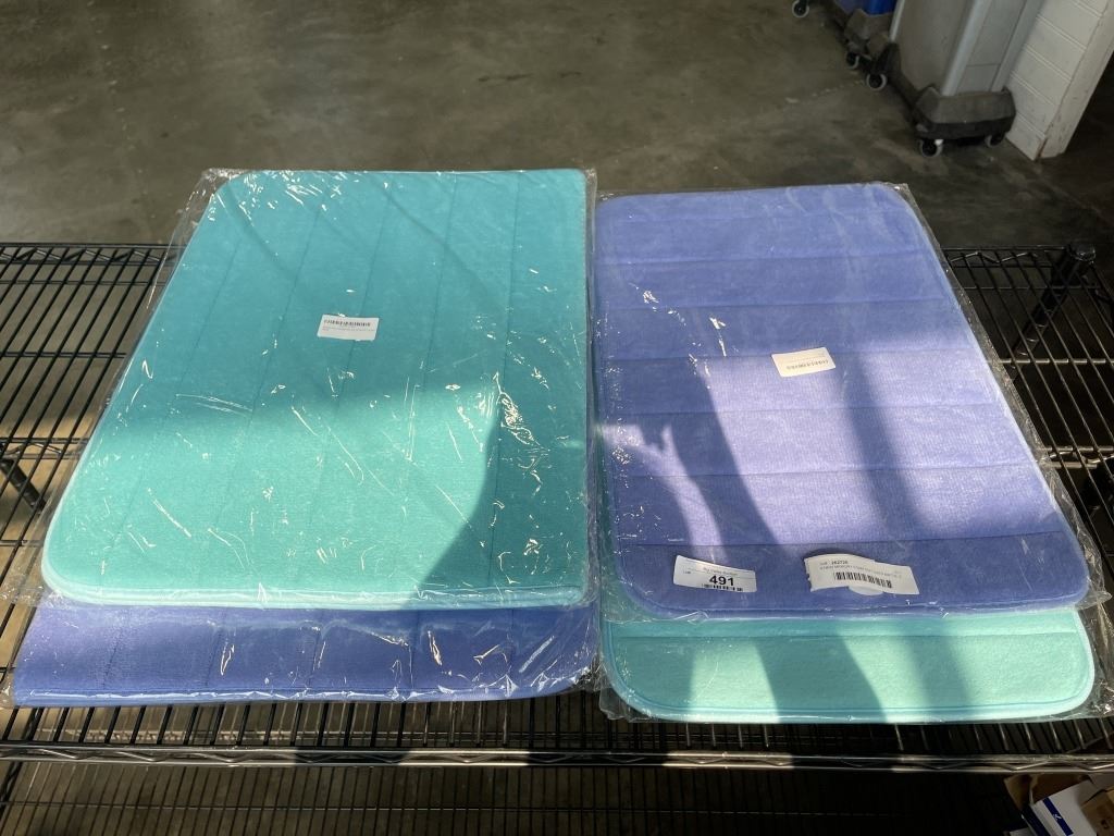 4 NEW MEMORY FOAM SOFT BATH MATTS, 2 ARE 23.6 X 35.4 AND 2 ARE 15.7 X 23.6