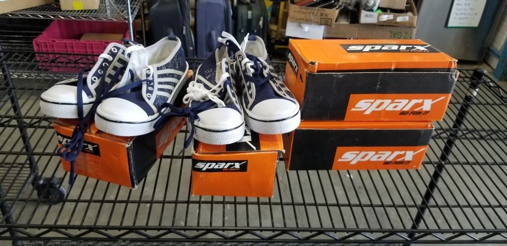 4 NEW PAIRS OF SPARX CONVERSE STYLE SHOES, IN BOX WITH CARRY BAG, SIZE UK 37 AND 40