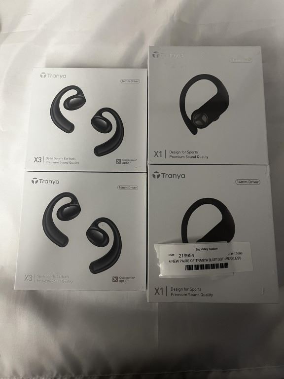 4 NEW PAIRS OF TRANYA BLUETOOTH WIRELESS HEADPHONES, 2 PAIRS X1, 2 PAIRS X3