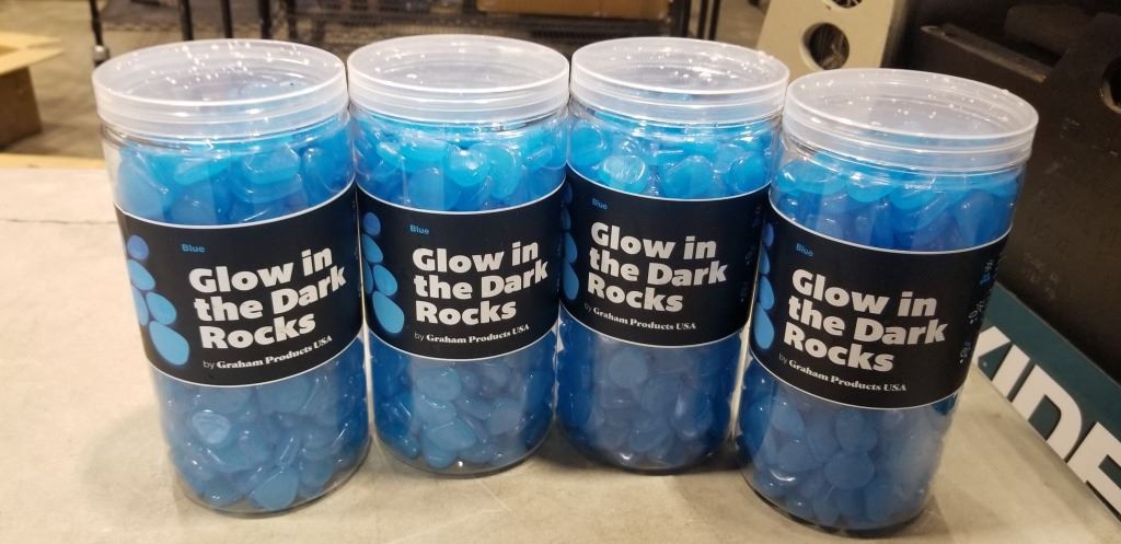 4 NEW TUBS OF BLUE GLOW IN THE DARK ROCKS