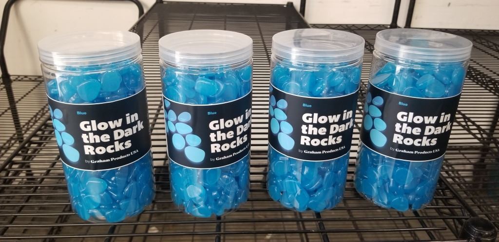4 NEW TUBS OF BLUE GLOW IN THE DARK ROCKS