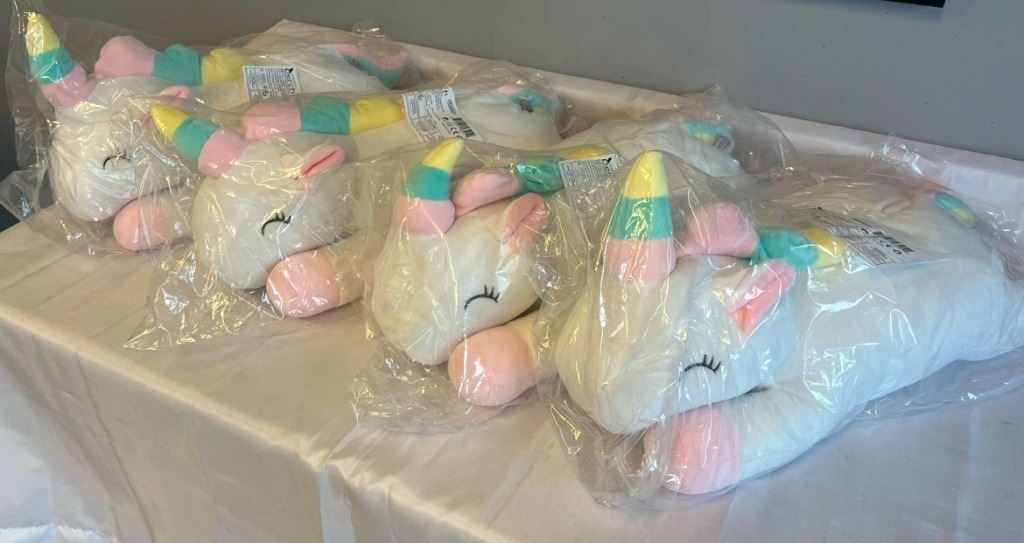 4 NEW UNICORN PLUSH PILLOWS WITH 3 BABY UNICORNS
