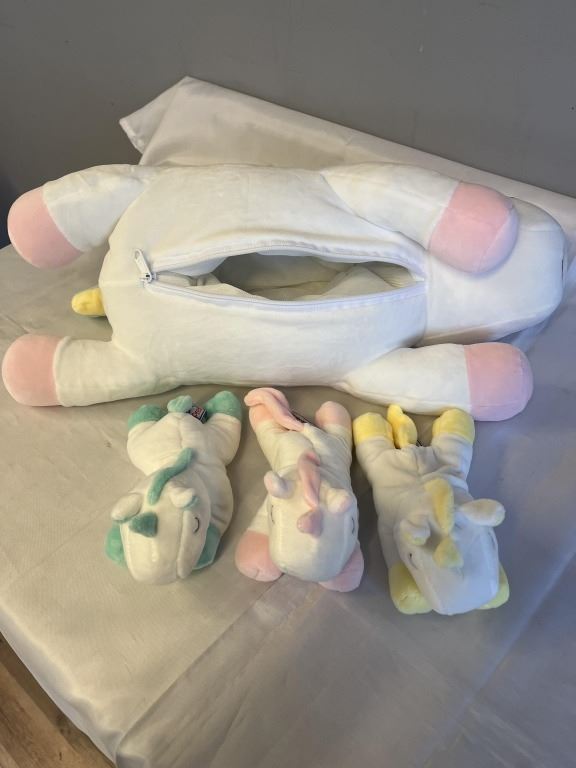 4 NEW UNICORN PLUSH PILLOWS WITH 3 BABY UNICORNS
