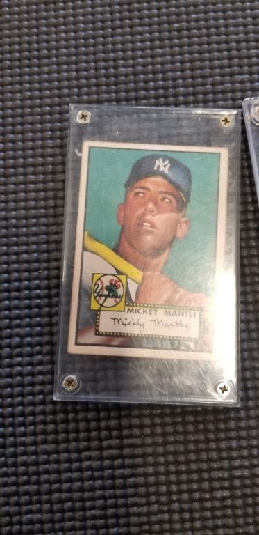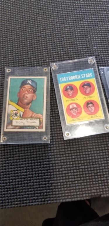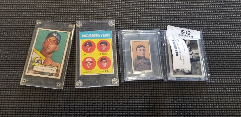 4 OLD BASEBALL CARDS, REPRINTS, WAGNER, BO, ROOKIES AND MICKEY MANTLE