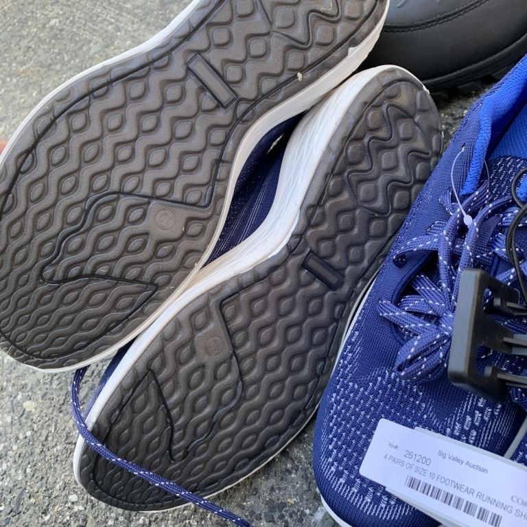 4 PAIRS OF SIZE 10 FOOTWEAR RUNNING SHOES AND WATERPROOF BOOTS