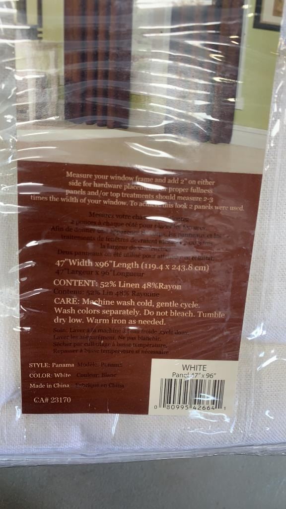 4 PANAMA WHITE SINGLE WINDOW PANEL CURTAINS - RETAIL $79 EACH